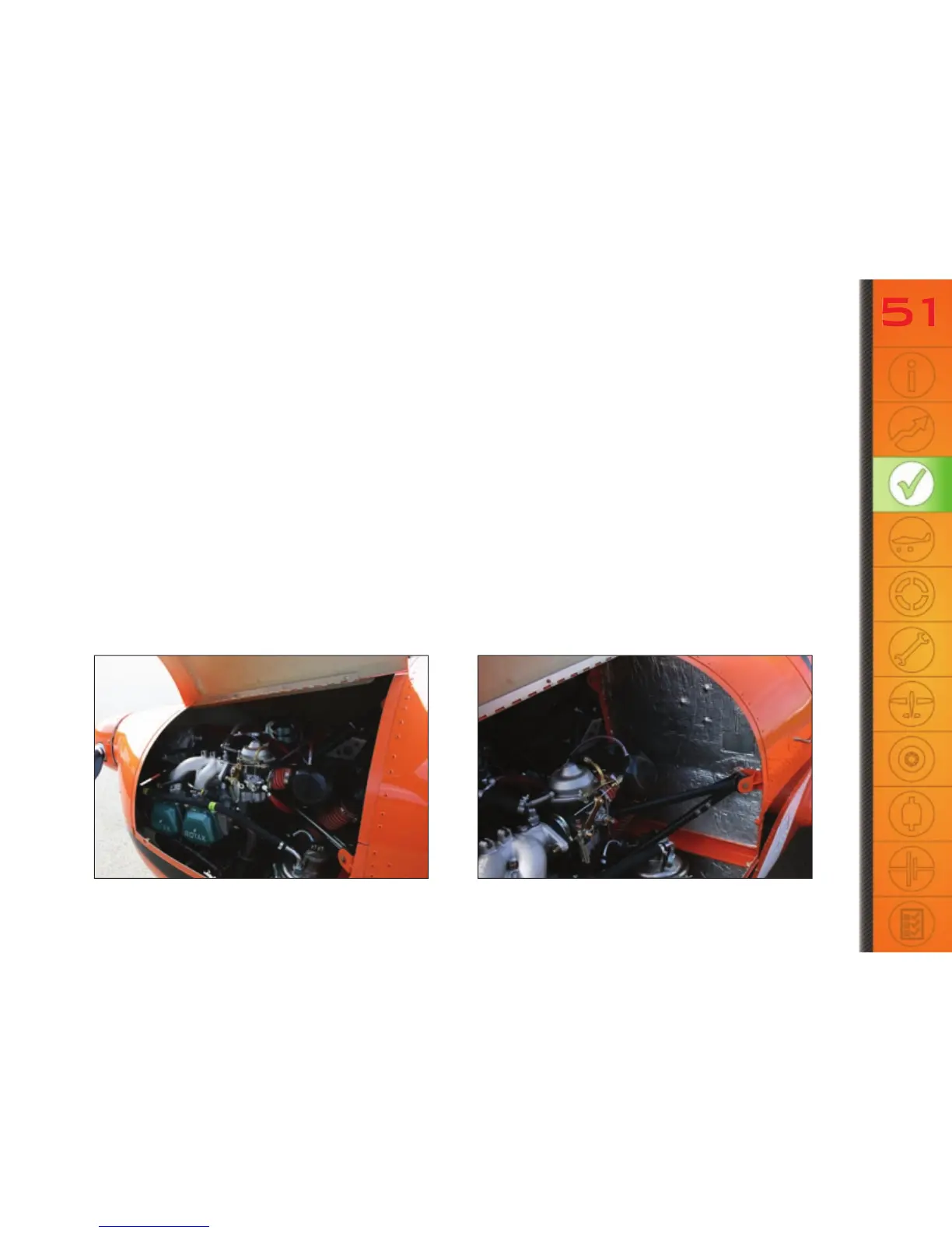 - Engine cowling attachment (screw tightness) – close it and lock it