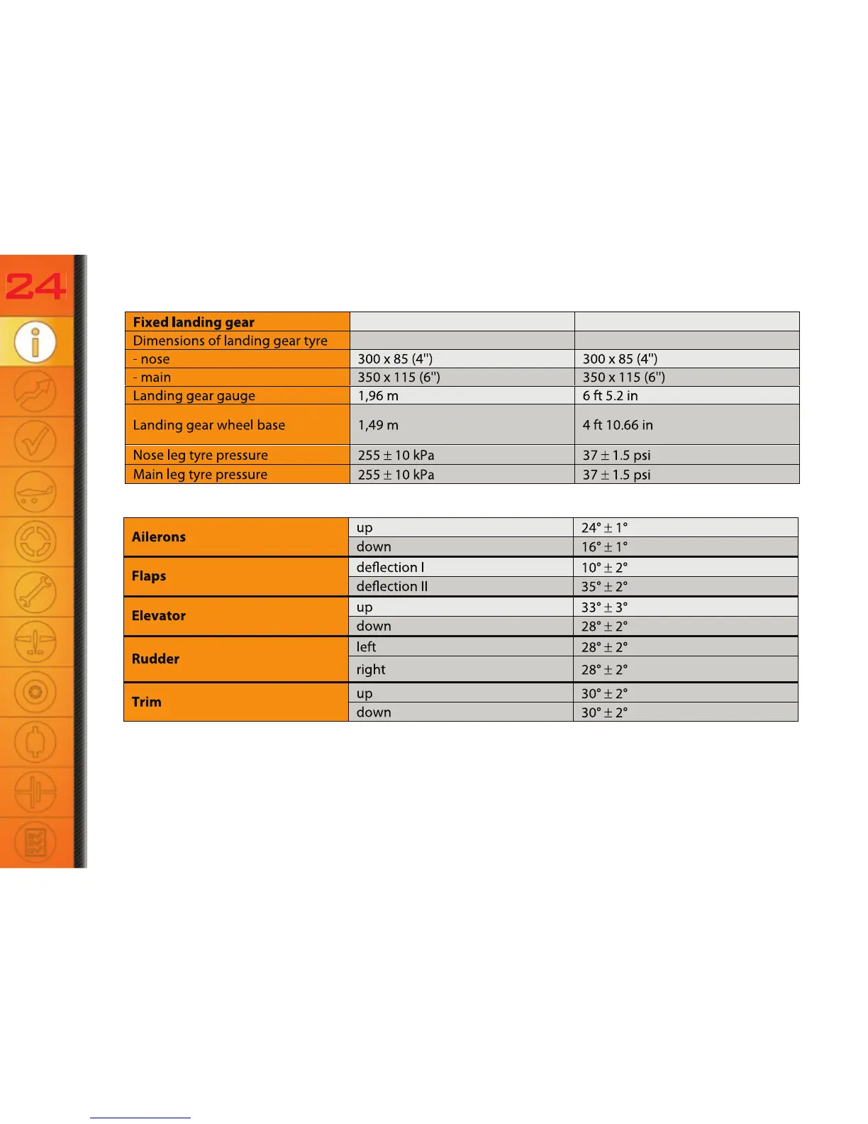 Skyleader SL 200 - Defl Ections of the Control Surfaces; Fuel Tanks