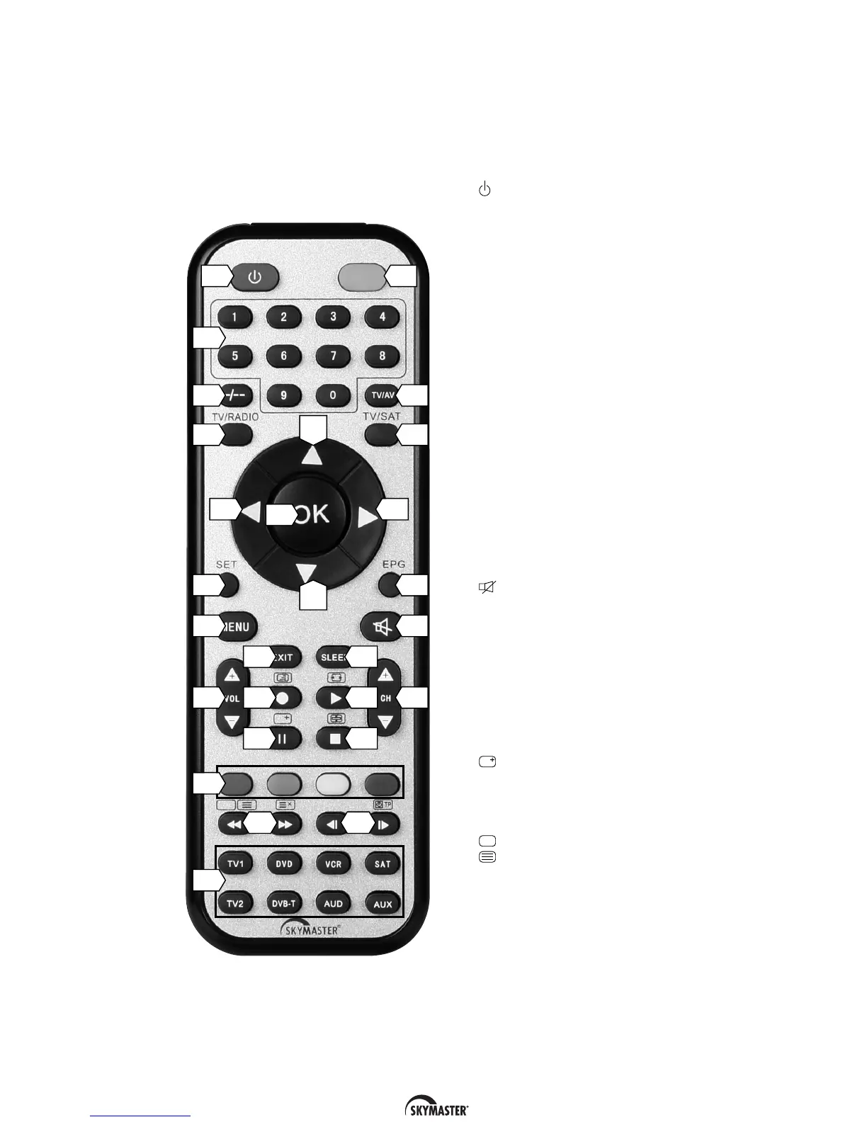 (TV, SAT, DVD, VCR, DVB-T, AUD, AUX):