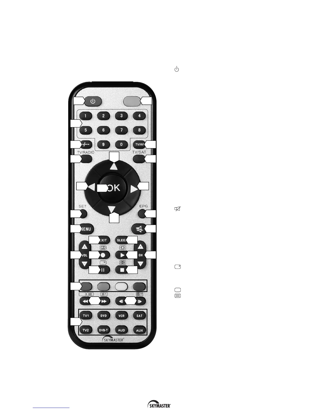 (TV, SAT, DVD, VCR, DVB-T, AUD, AUX):