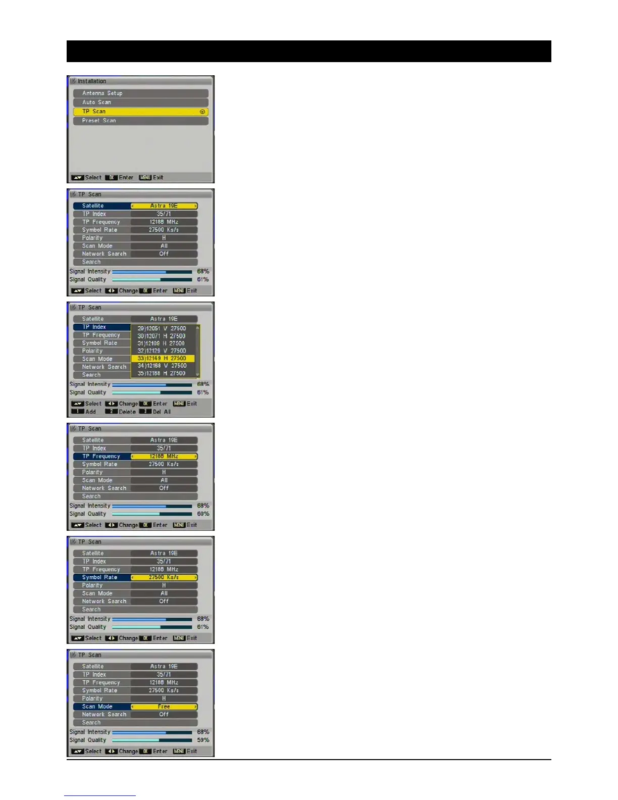 der press [2]. If you would like to delete all the selected satellite's transponders, press [3].