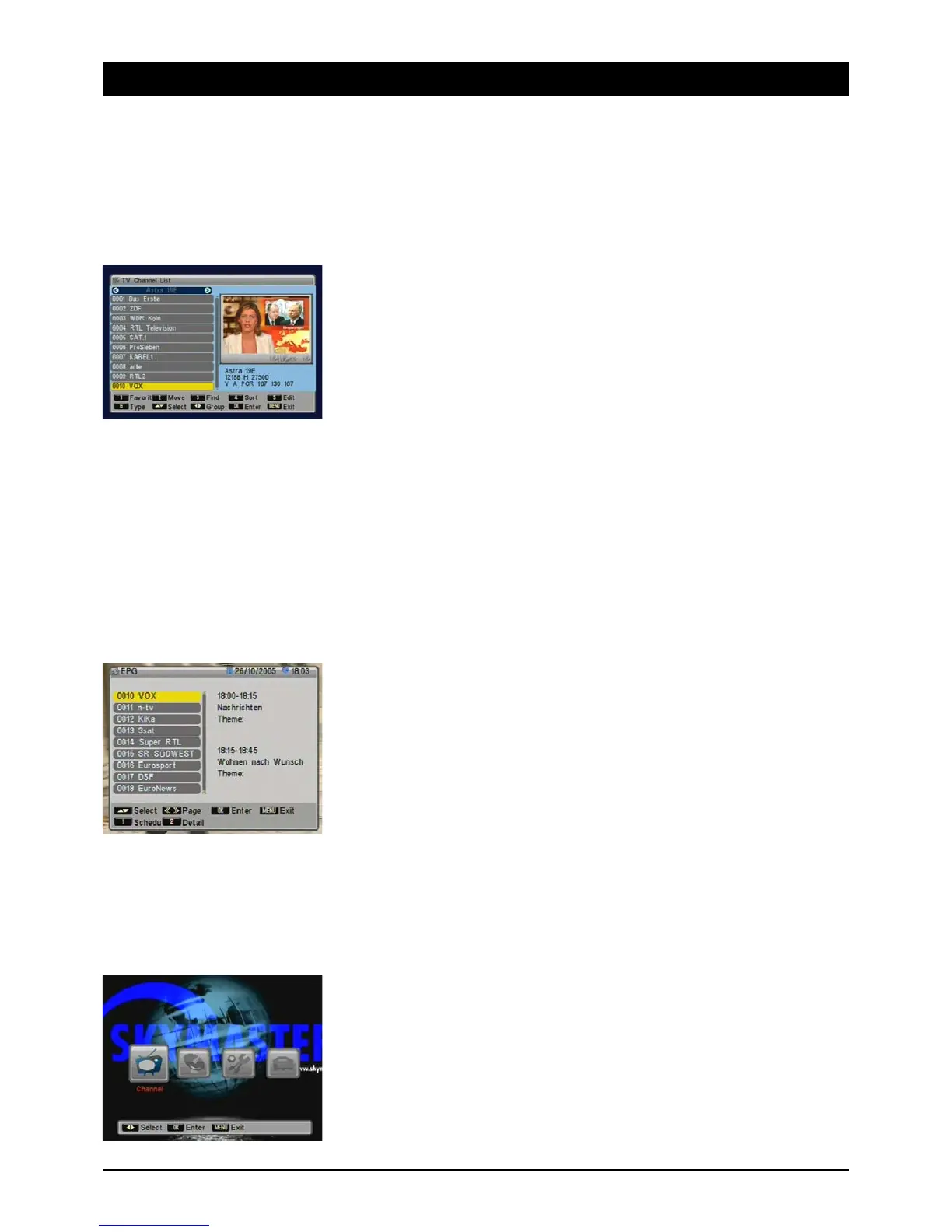 or remove channels, tune the receiver to your SAT system, load new software via satellite and much