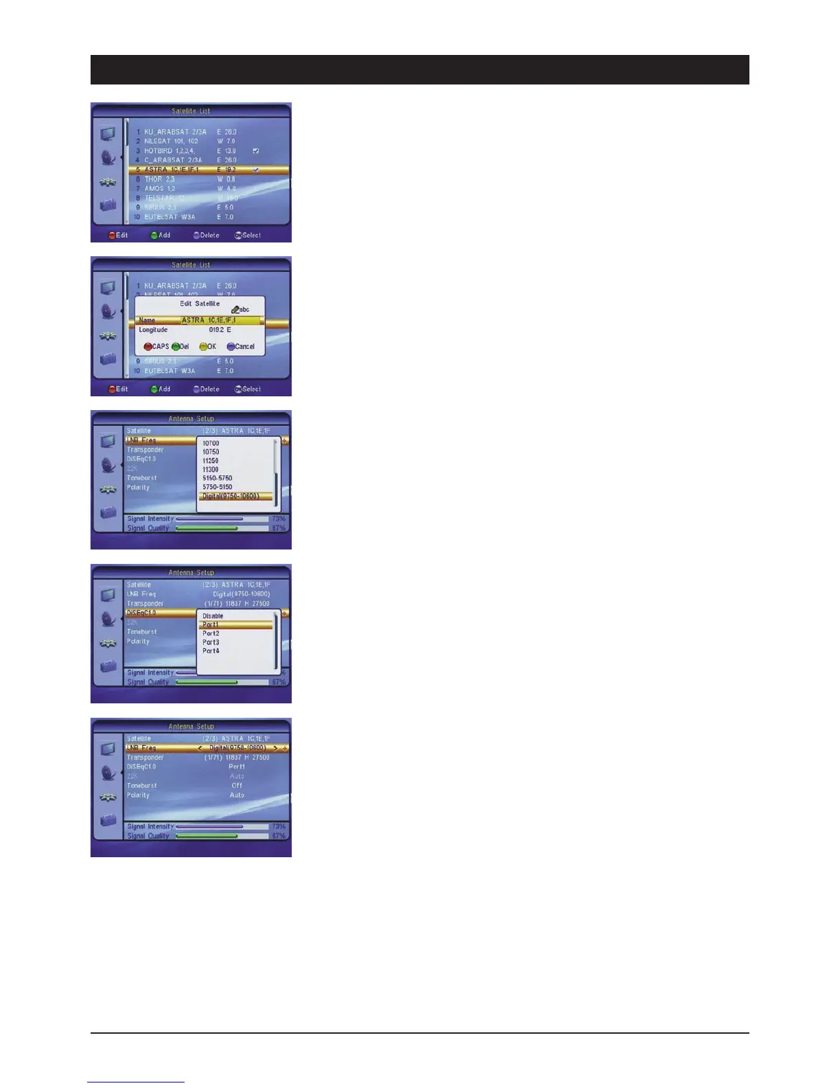 satellite ([red] button), to add a new satellite ([green] button) or to delete a satellite position