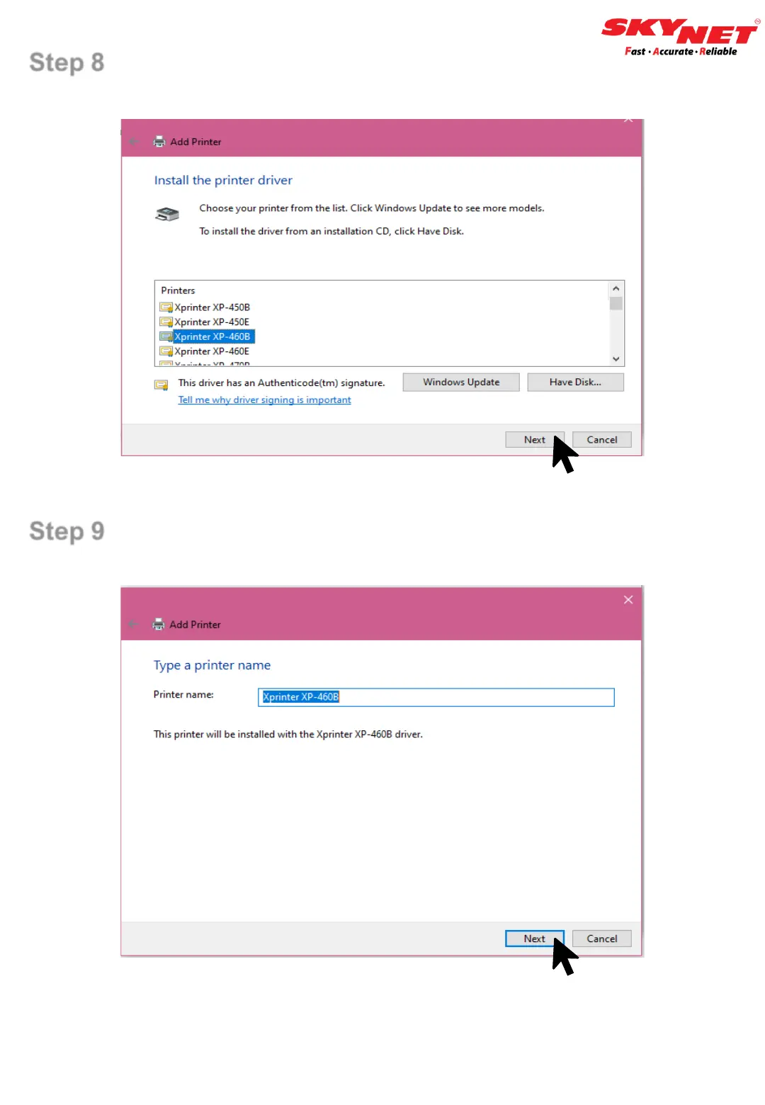 Skynet XPRINTER XP-460B - Driver Installation Confirmation
