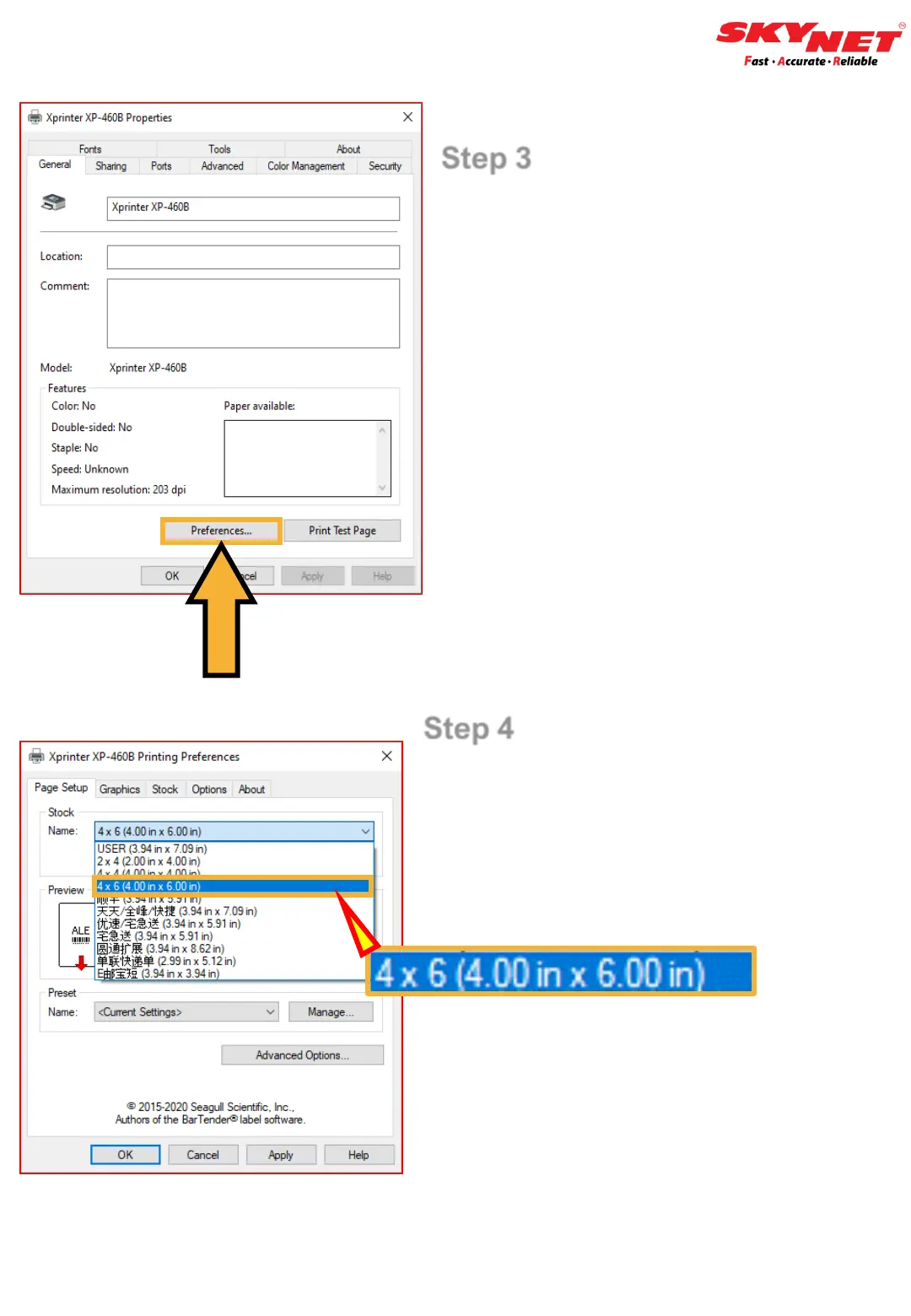 Skynet XPRINTER XP-460B - Configure Paper Size Preferences
