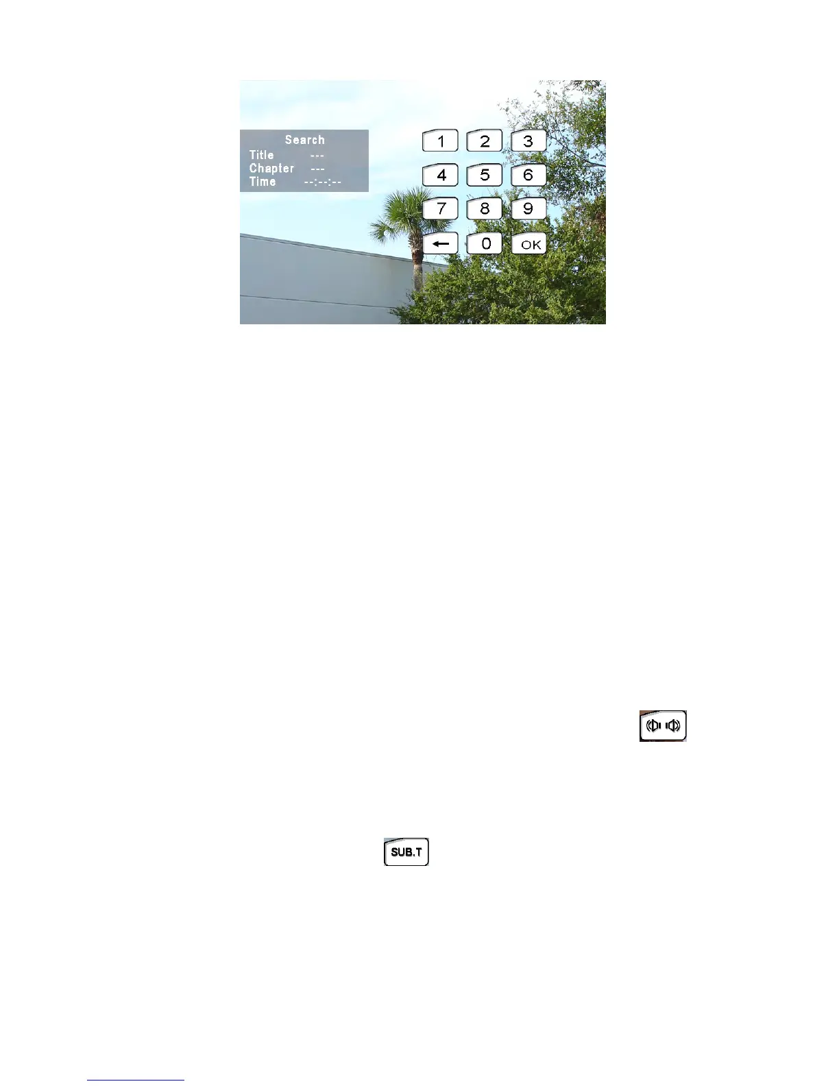 DuringDVD,VCDandCDplayback,youcanusethenumerickeypadontheremotecontrolto