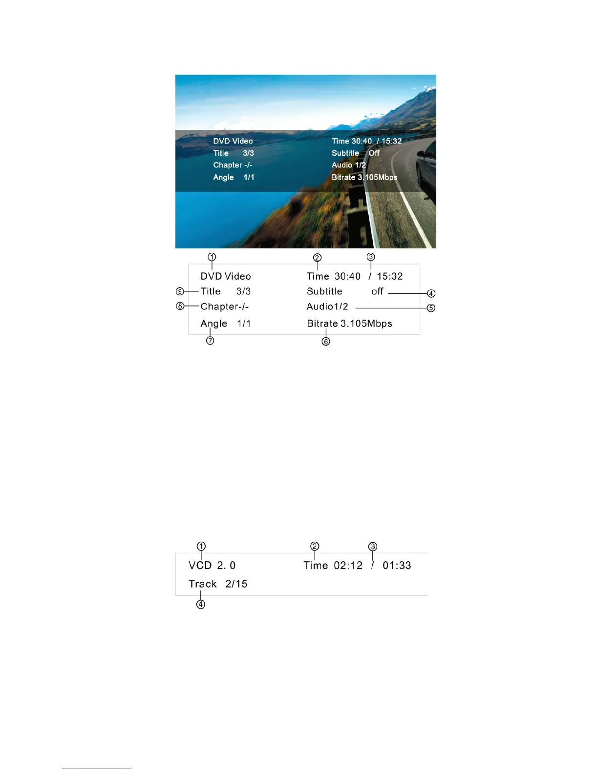 ThefollowinginformationisdisplayedatthemiddleofthescreenduringVCDplayback: