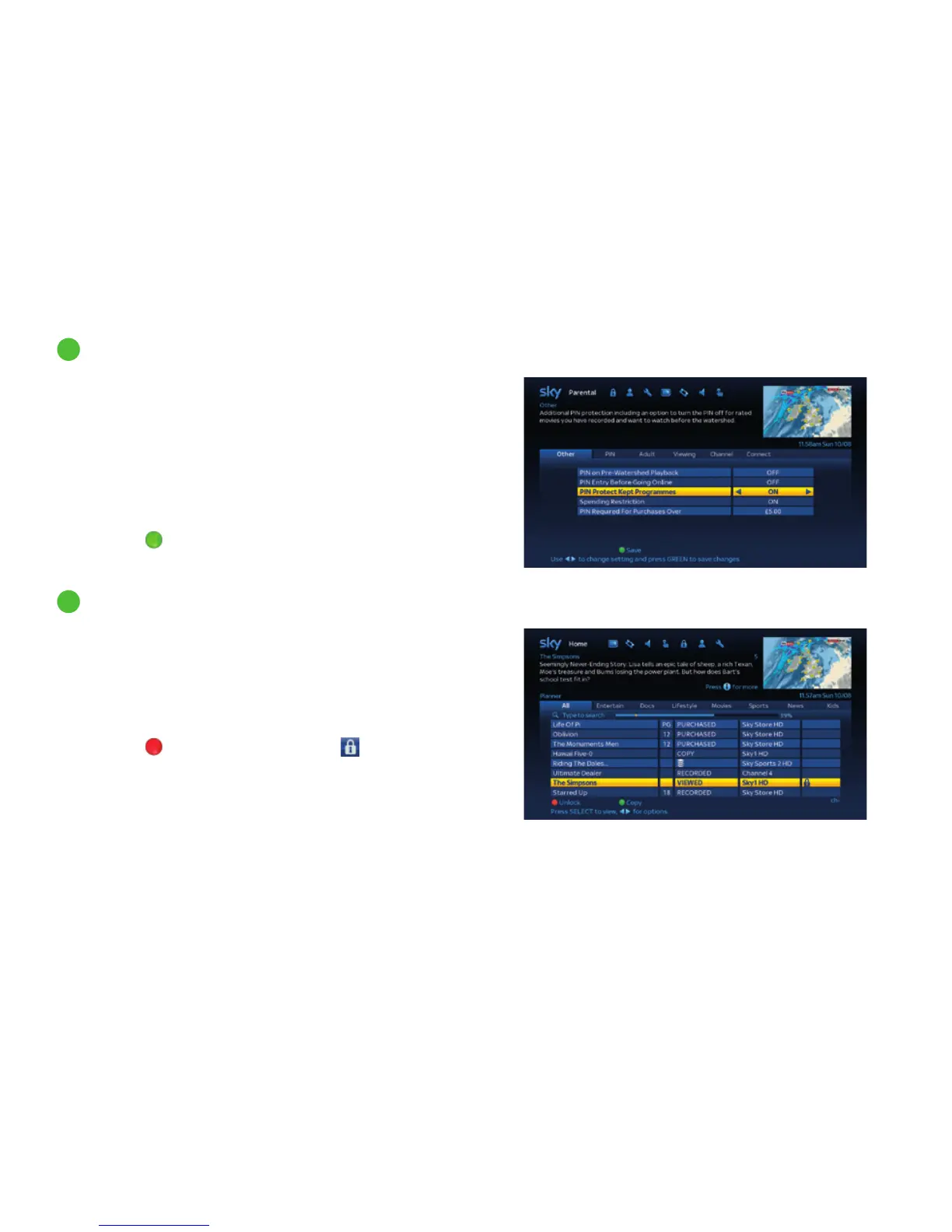 2 Highlight PIN Protect Kept Programmes and use the left/right