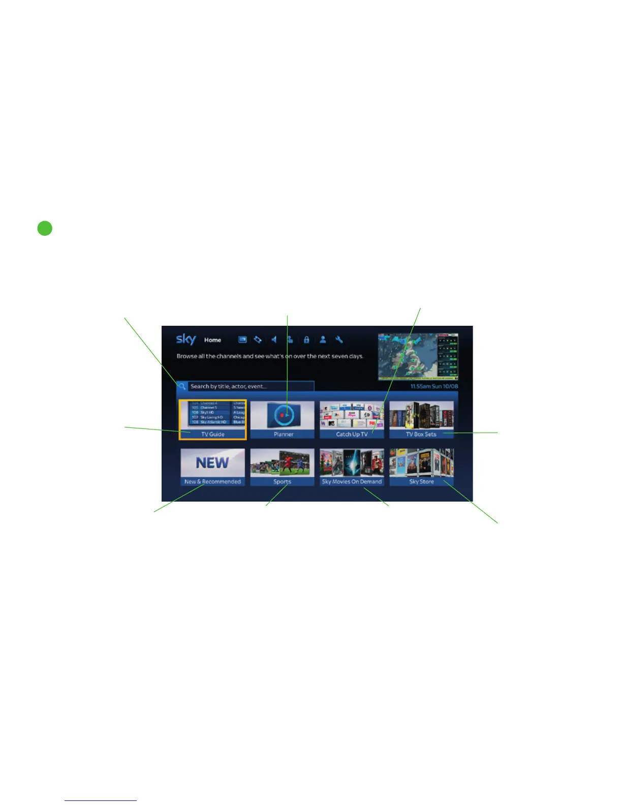 Press the tv guide button on your remote control to display the Sky±