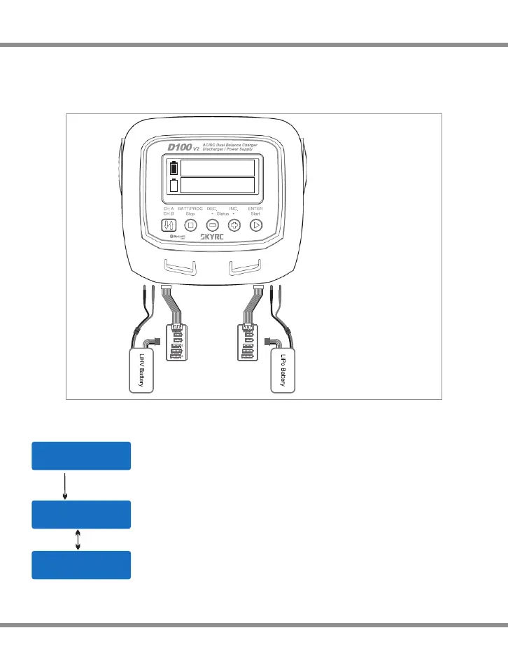 Please connect the battery to the charger main battery lead to battery socket and balance