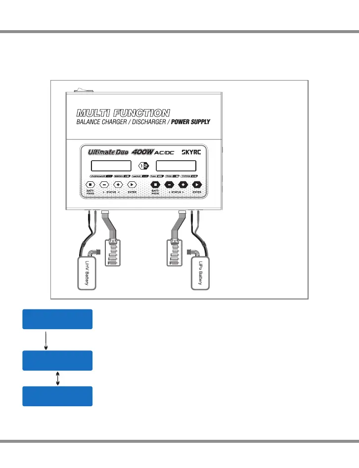 Please connect the battery to the charger main battery lead to battery socket and balance