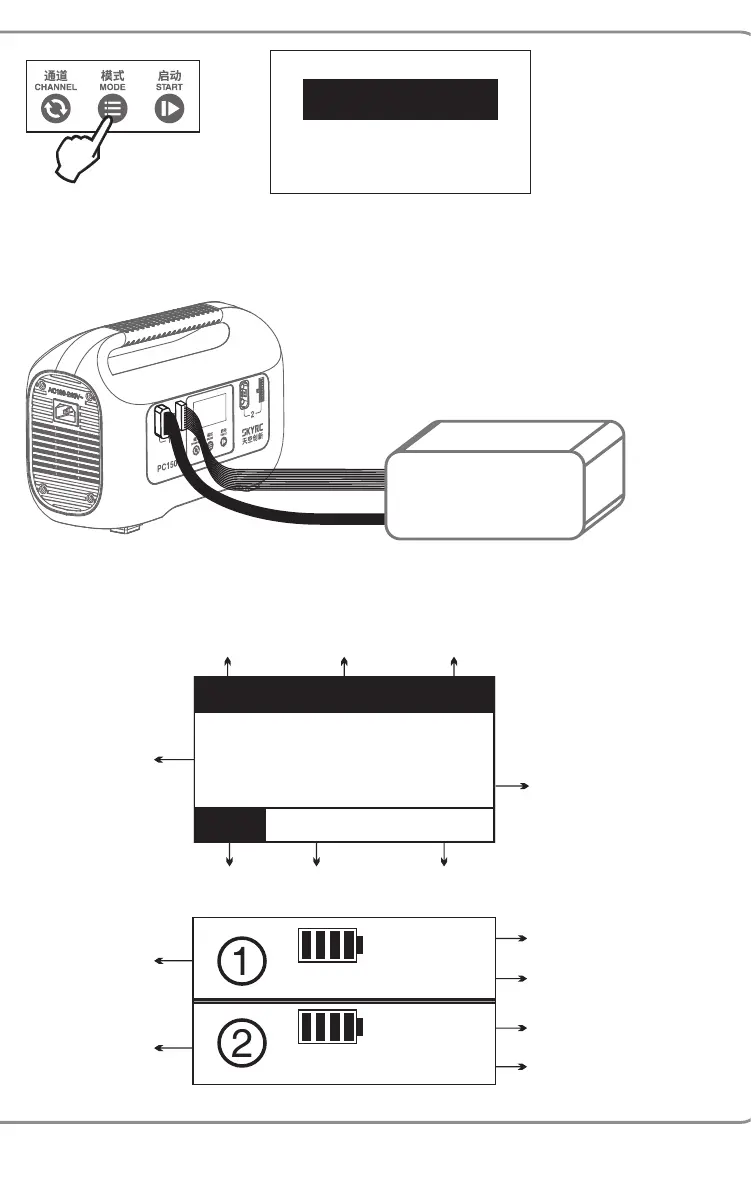 Note: 12S and 14S batteries cannot be charged simultaneously; short-press the START button to stop