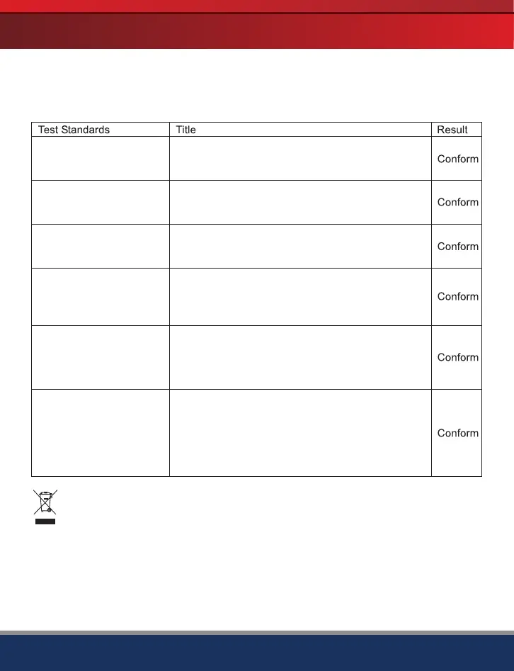 The product has been tested to meet the following technical standards: