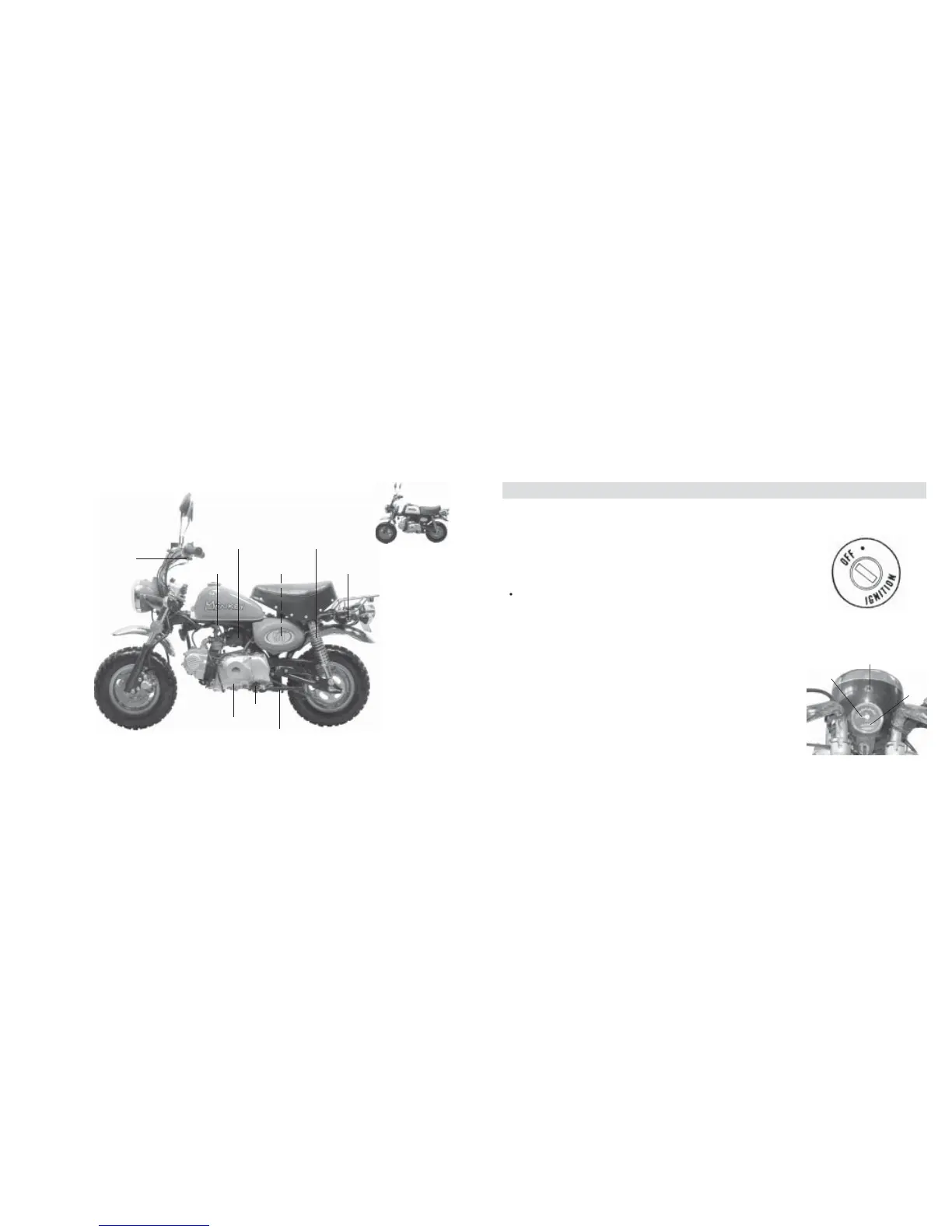 This motorcycle is equipped with a pair of identical ignition keys. Keep the spare key in a safe place.