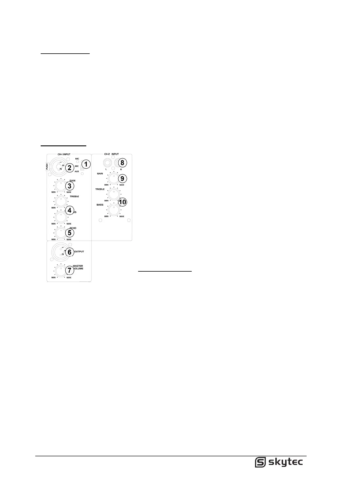 1. Eingangswahlschalter Kanal 1: Mikrofon oder AUX