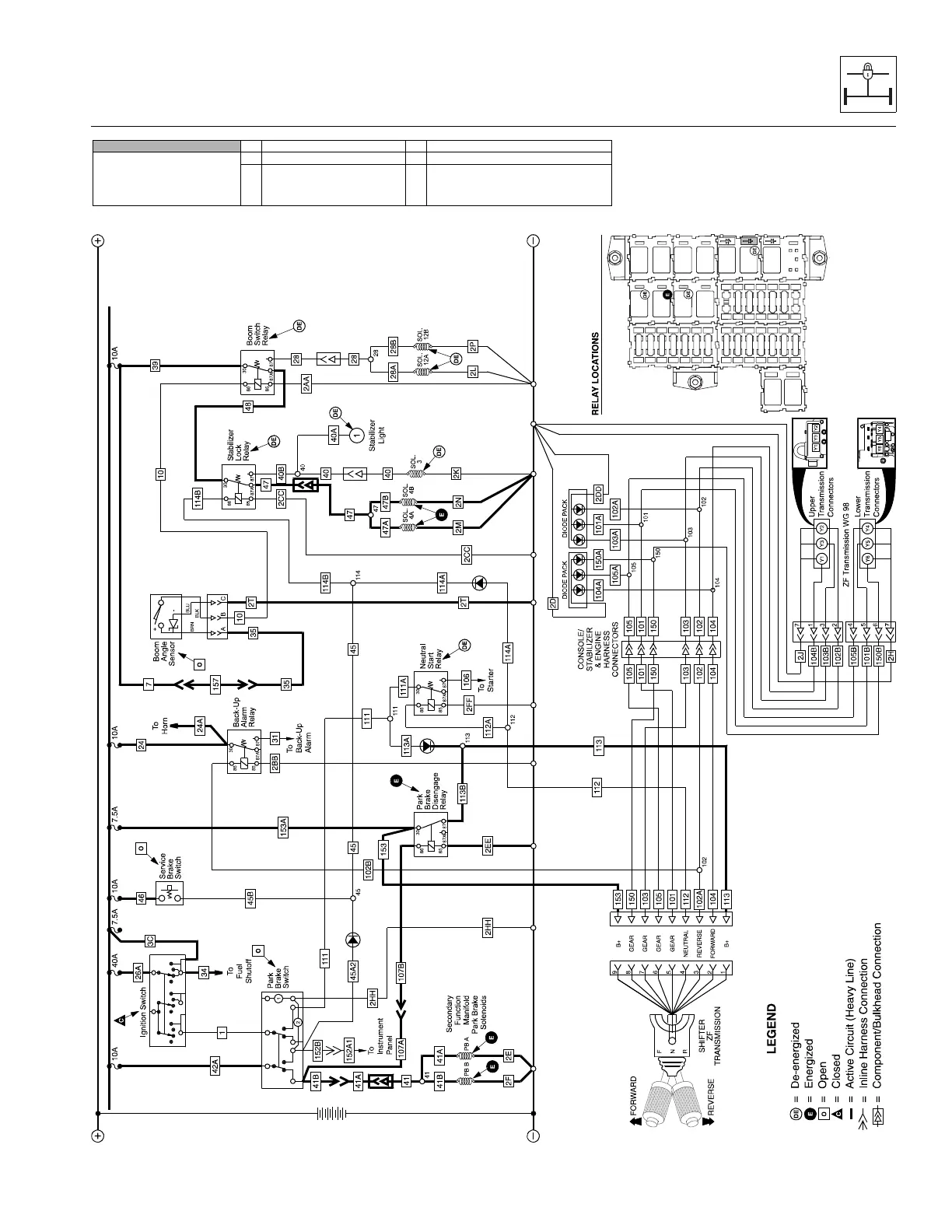 2. Boom Above 40° 5. Transmission in Fwd. or Rev.