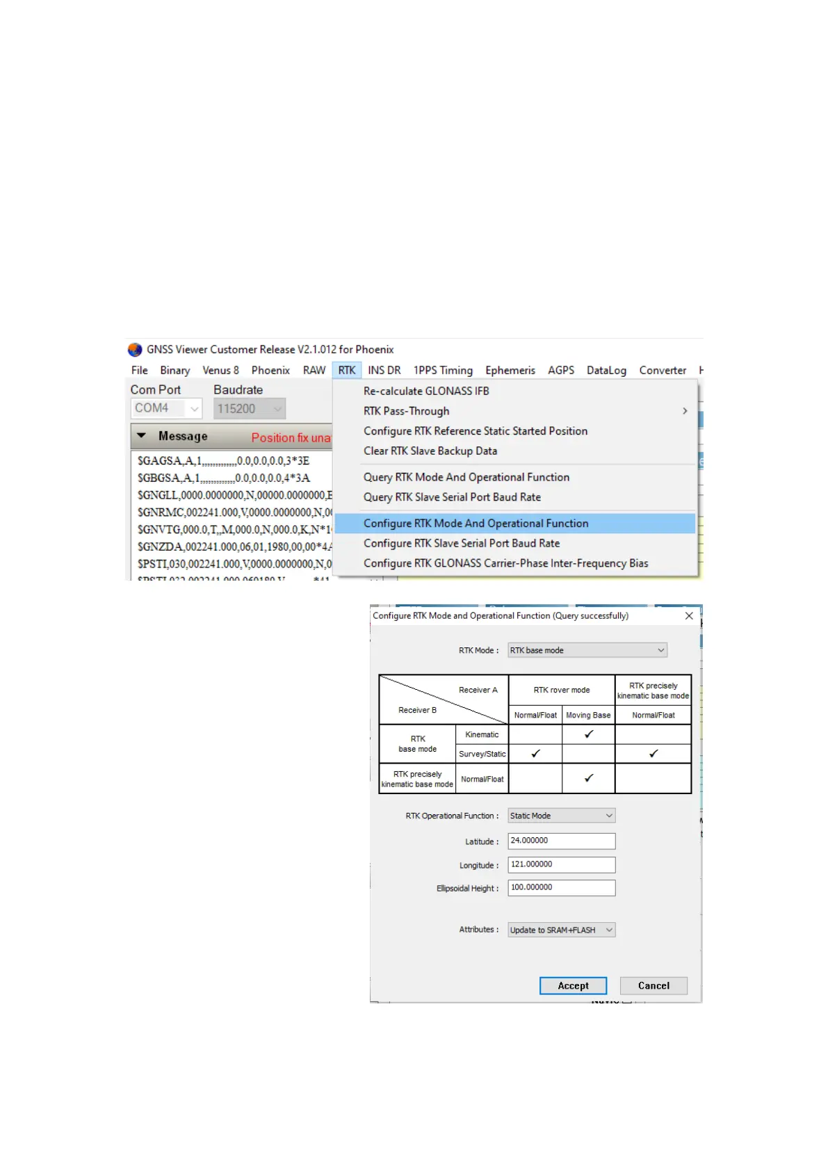 From RTK pull-down menu, select Configure RTK Mode And Operational Function, select RTK base