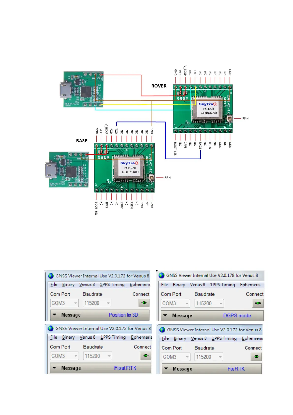 see rover state going from Position Fix 3D or DGPS mode, to Float RTK, to Fix RTK if earlier mentioned