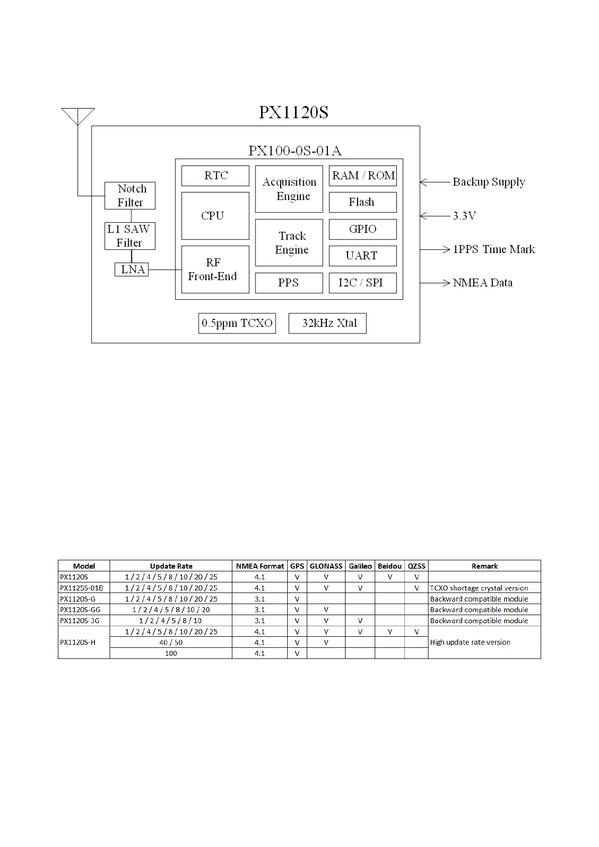 The PX1120S module performs all the necessary system initialization, signal acquisition, signal tracking, data