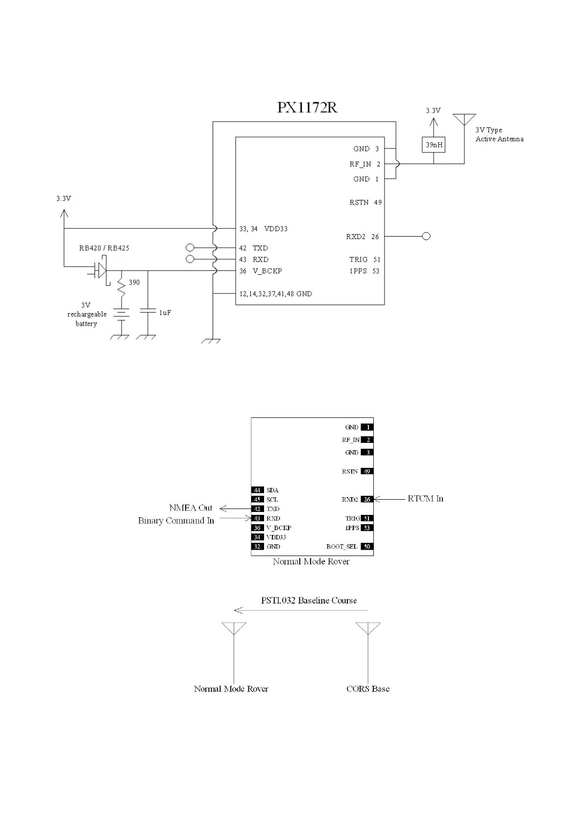 SkyTraq PX1172R - Application Circuit - Rover Mode Config 1; Configuration Diagram and Description