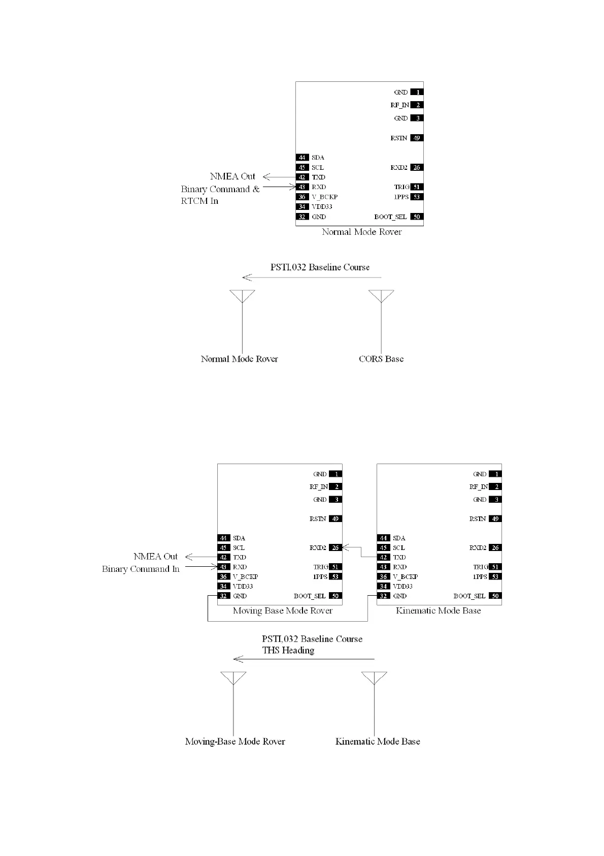 SkyTraq PX1172R - Application Circuits - Rover & Moving Base Modes; Rover Mode Configuration 2; Moving Base Mode Configuration