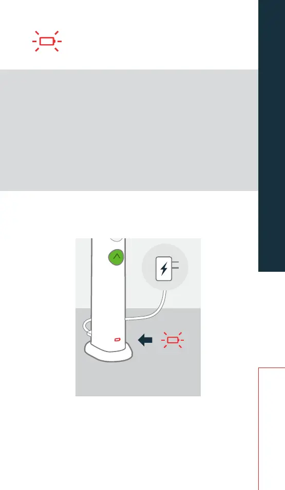 You seeDŴDVKLQJ red battery icon.