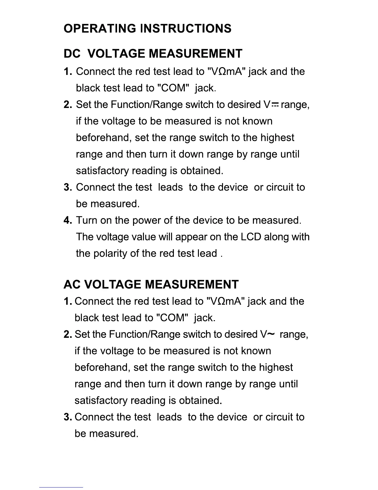 SKYTRONIC Digital Multimeter - Operating Instructions; DC Voltage Measurement; AC Voltage Measurement