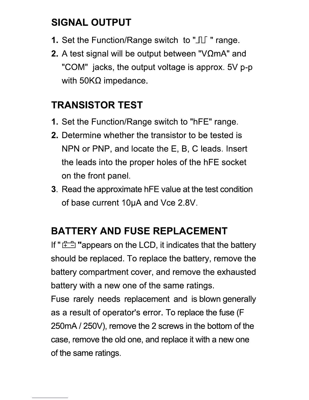 SKYTRONIC Digital Multimeter - Signal Output; Battery and Fuse Replacement