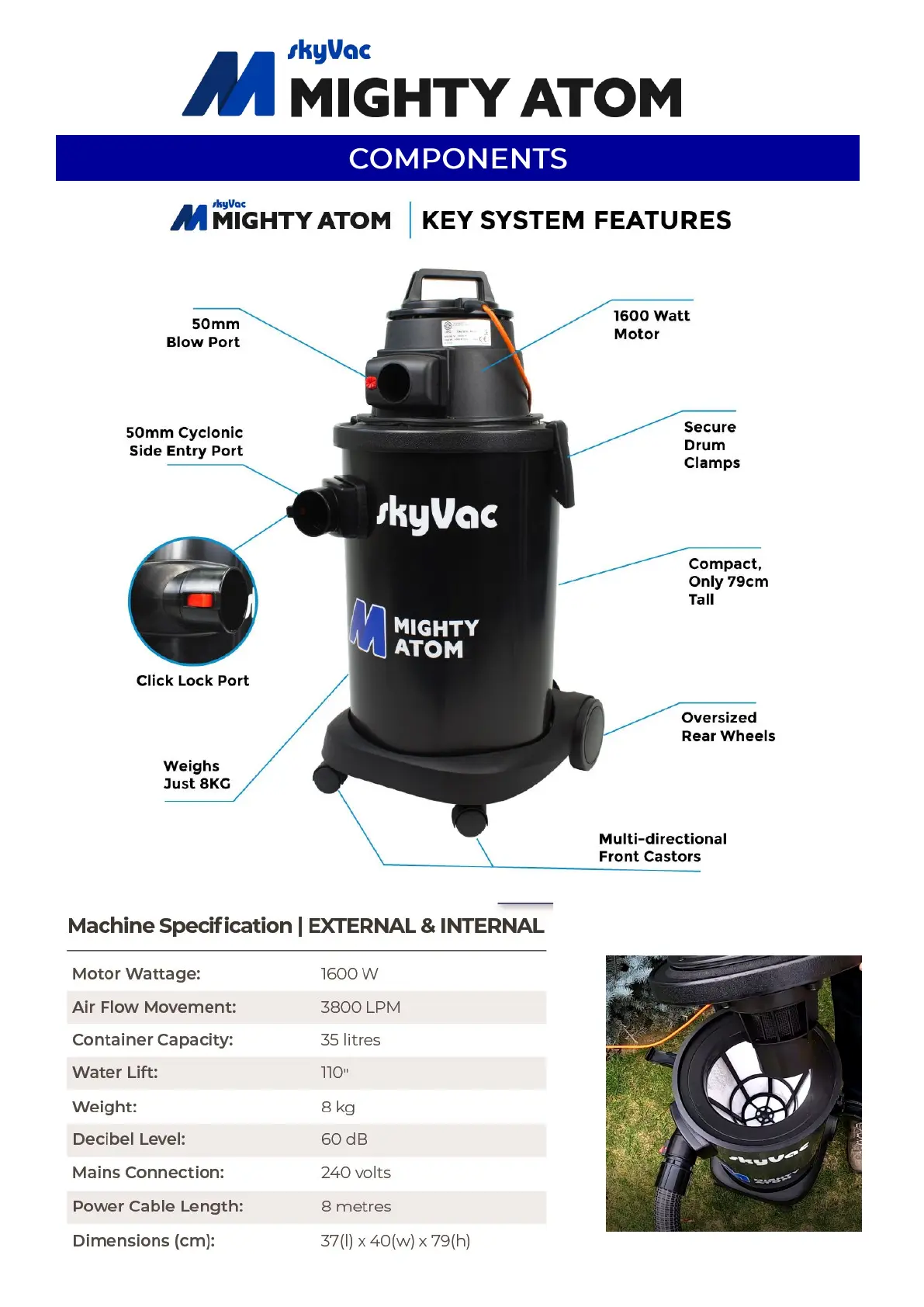 SkyVac MIGHTY ATOM - COMPONENTS; KEY SYSTEM FEATURES