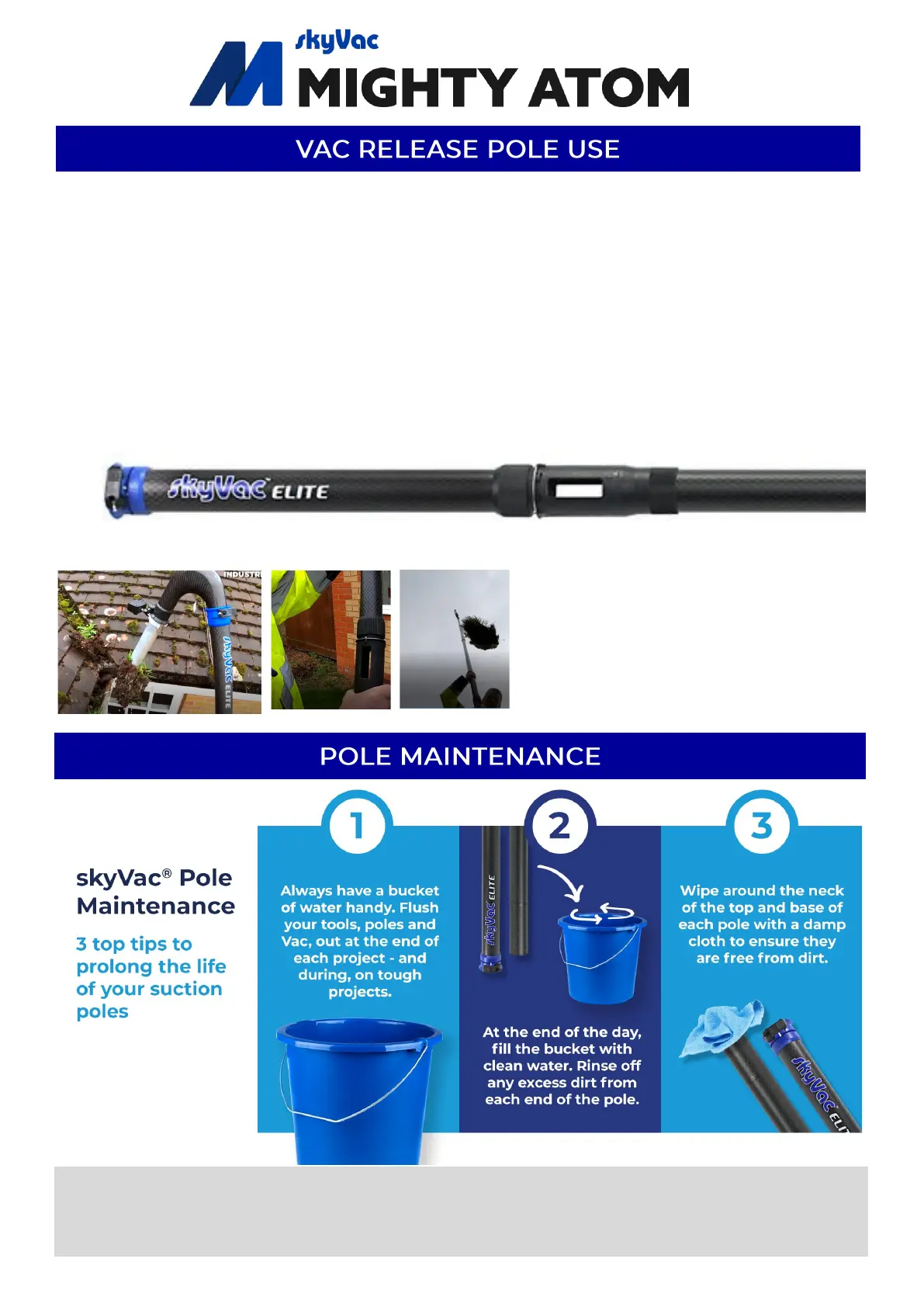 1. The skyVac® Vac Release pole should always be the base pole, closest to the operator.