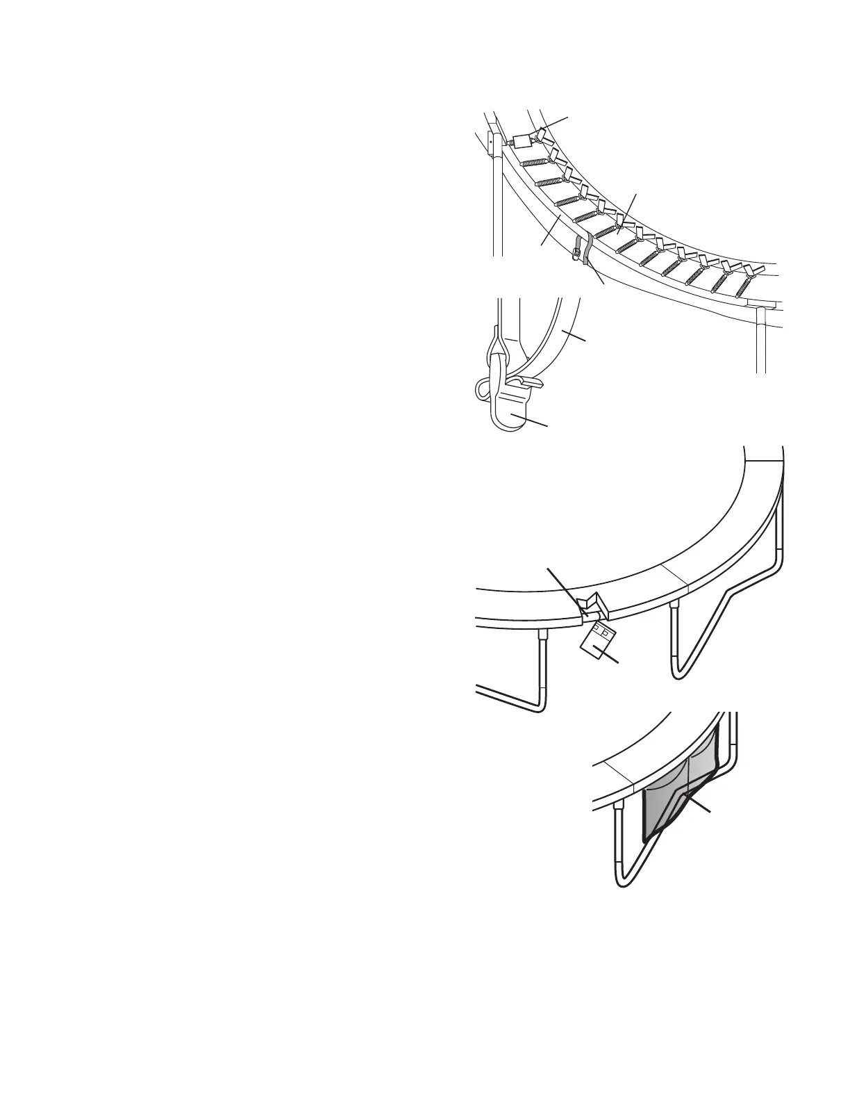 To disassemble (take apart) the trampoline, follow assembly steps 1 through 9 in reverse order. Do not attempt to