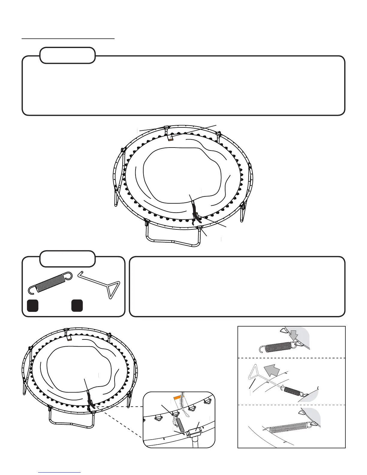 Place the jump mat (5) on clear ground inside the frame. Make sure the 2 warning decals align with 2 T-joints!