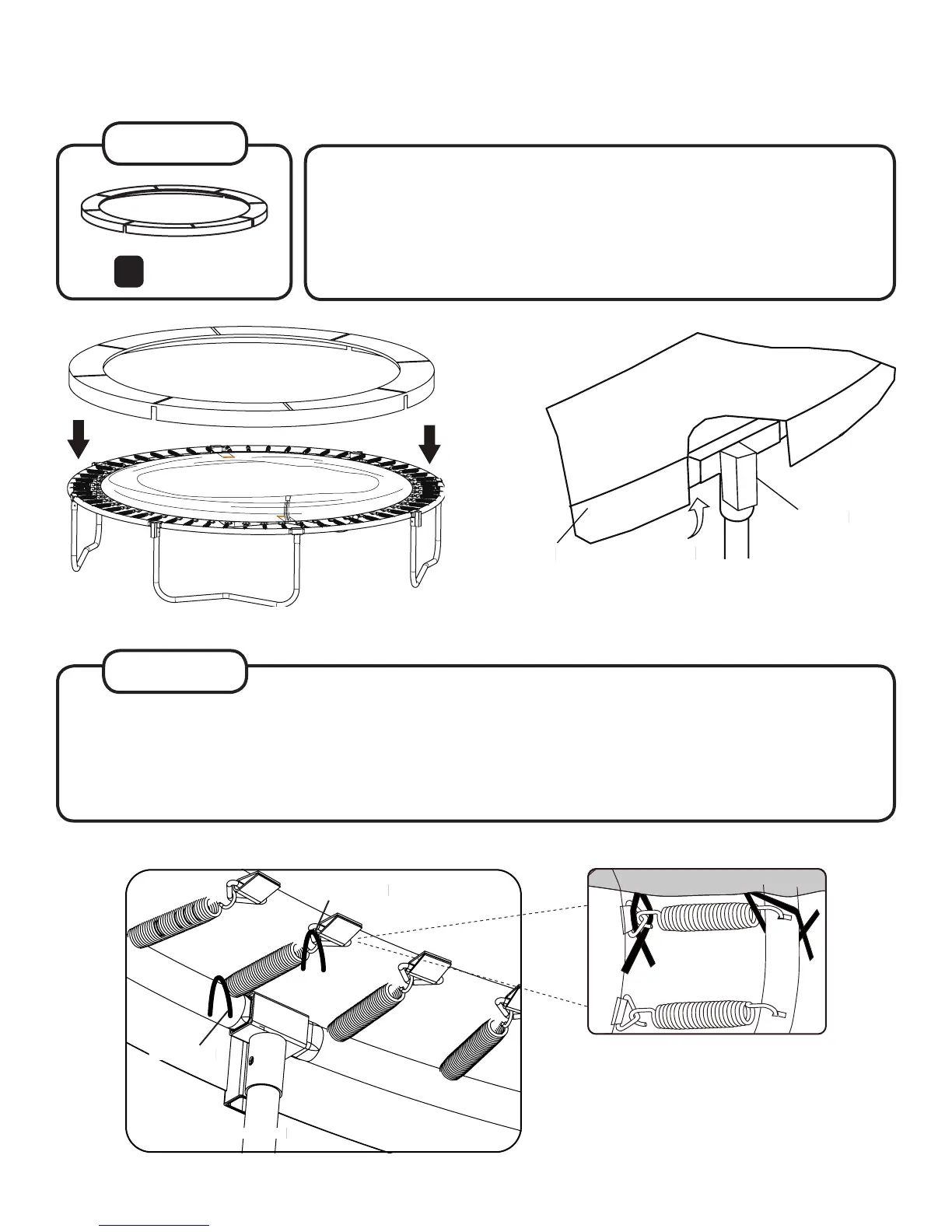 Important: Don’t use the trampoline without the frame pad. It’s designed to