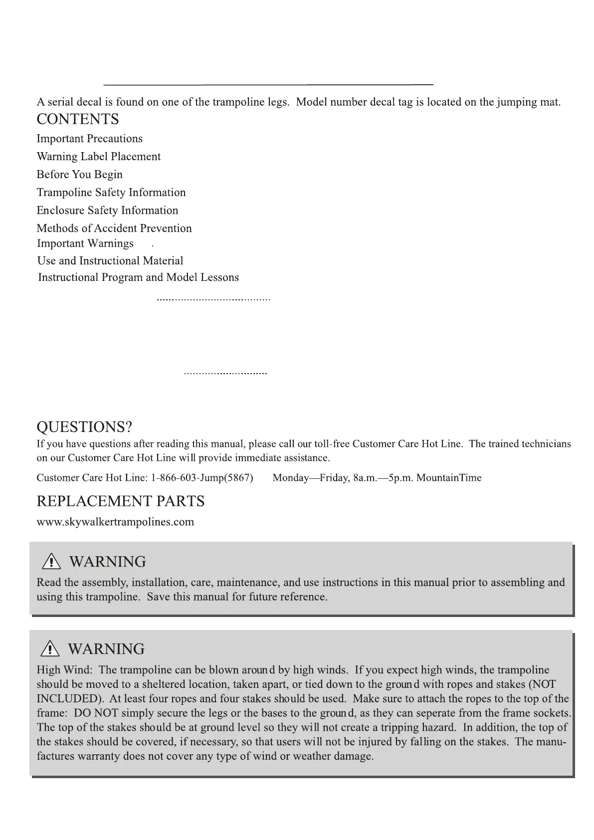 Ordering Replacement Parts.................................14