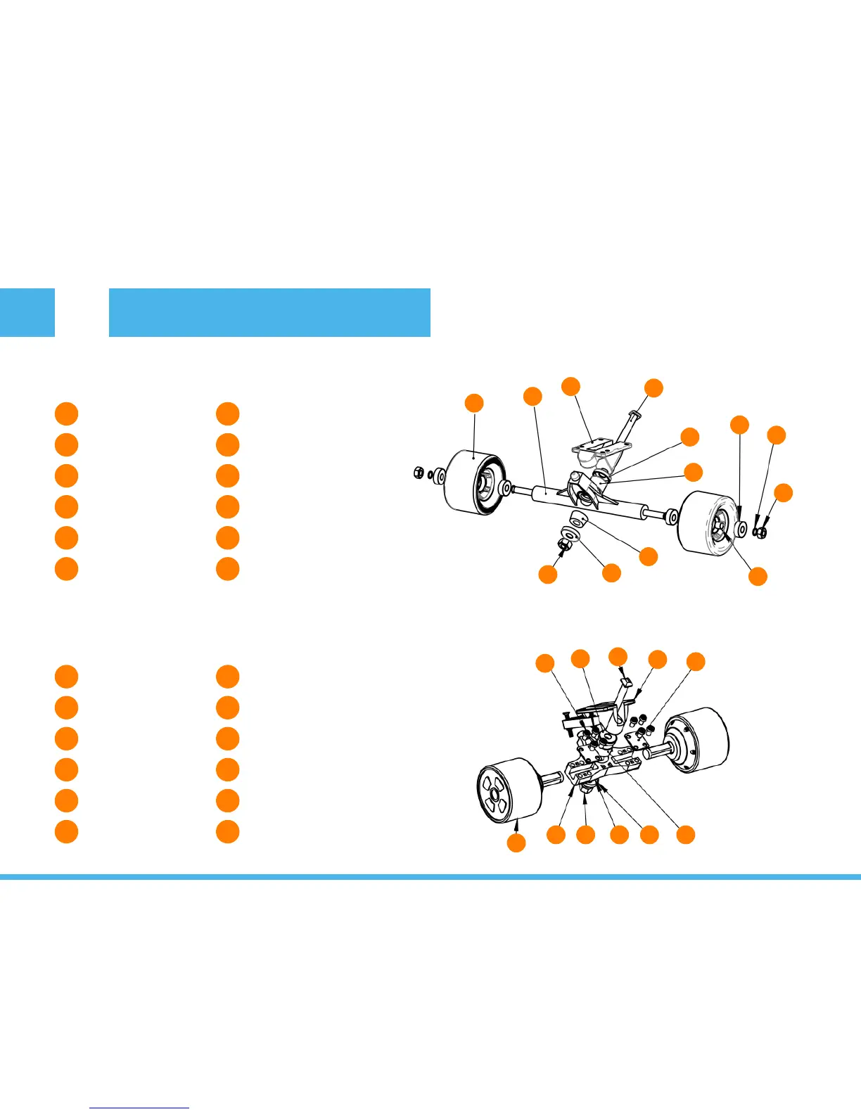 Skywalker SkyboardMini - 11 Component Parts; Power Truck Set Details; Unpowered Truck Set Details