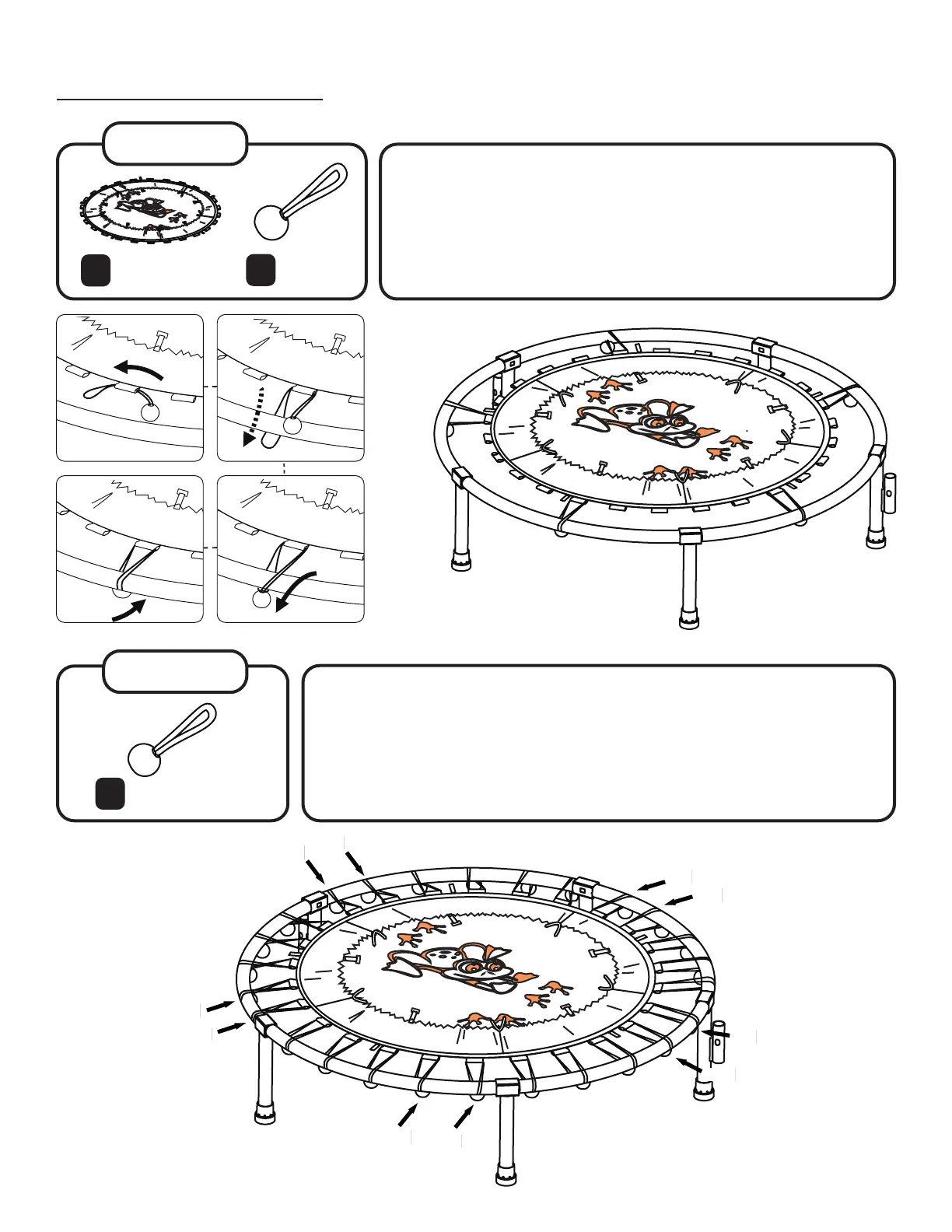 Assurez-vous que les boules sur les bandes élastiques sont situées sous la trampoline!