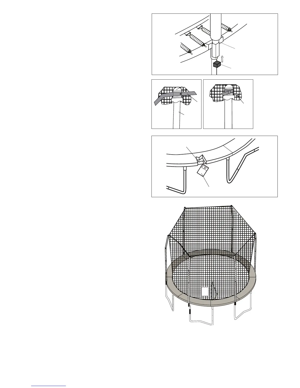 To disassemble the enclosure and trampoline, follow assembly steps 1 through 11 in reverse order.