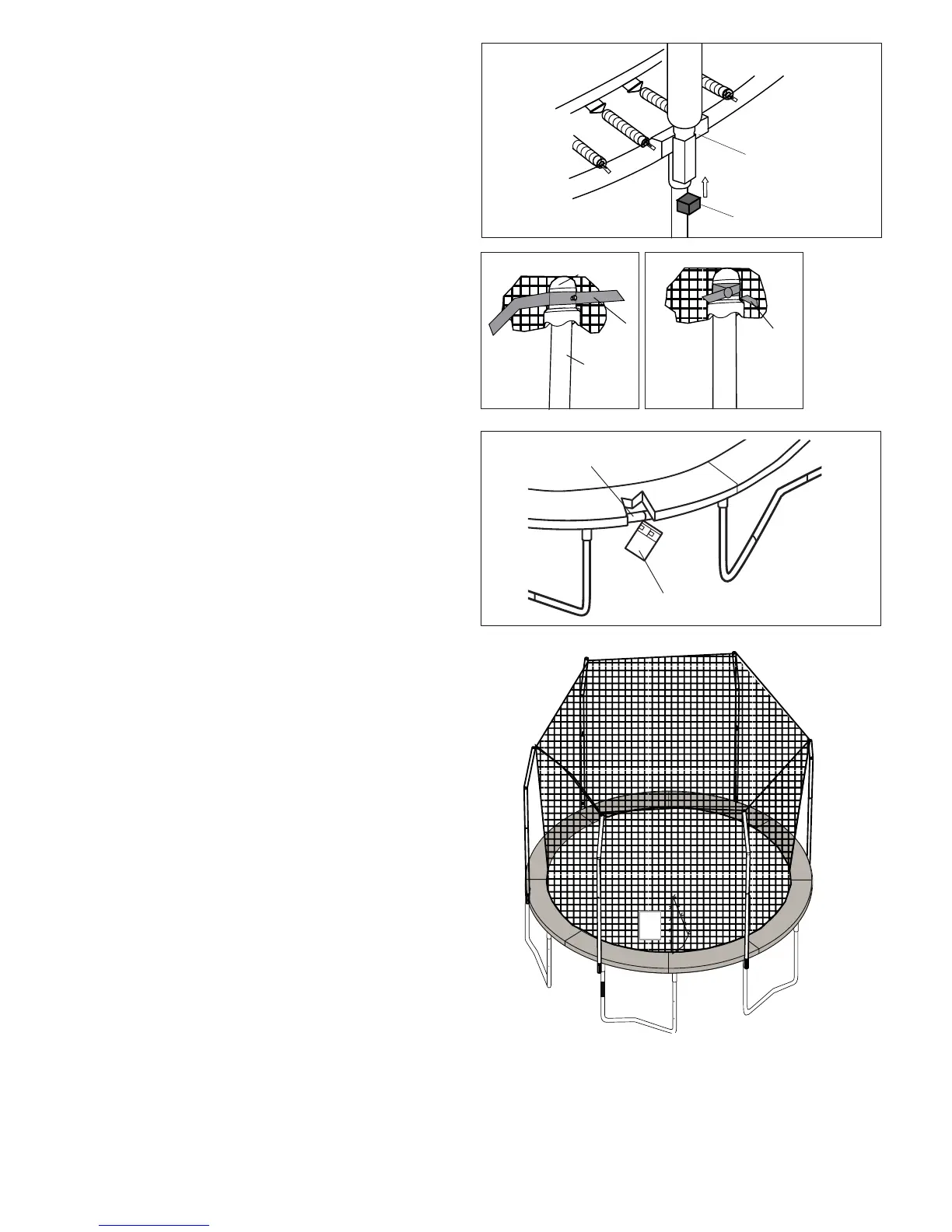 Veuillez suivre les étapes 1 à 11 dans l'ordre inverse pour désassembler l'enceinte et la trampoline.