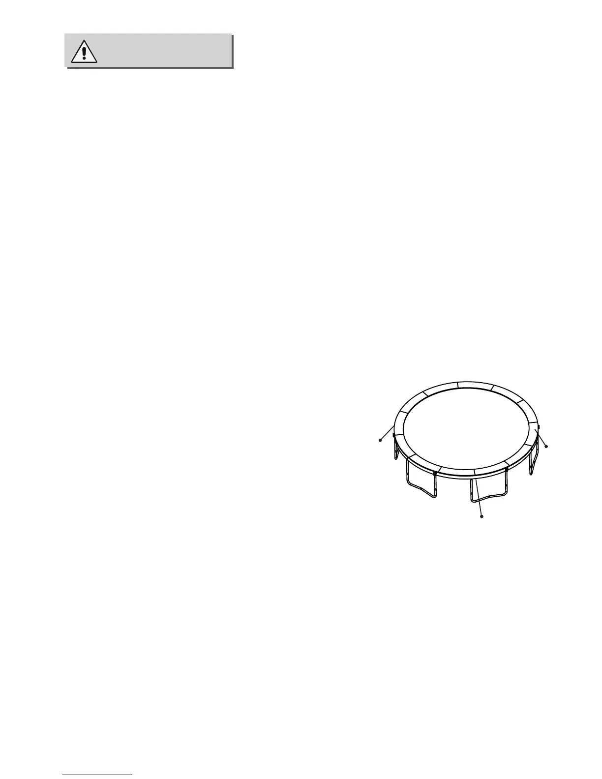 être portés sur la trampoline. L'utilisateur doit retirer tous les objets pointus sur lui qui pourraient entraîner des blessures