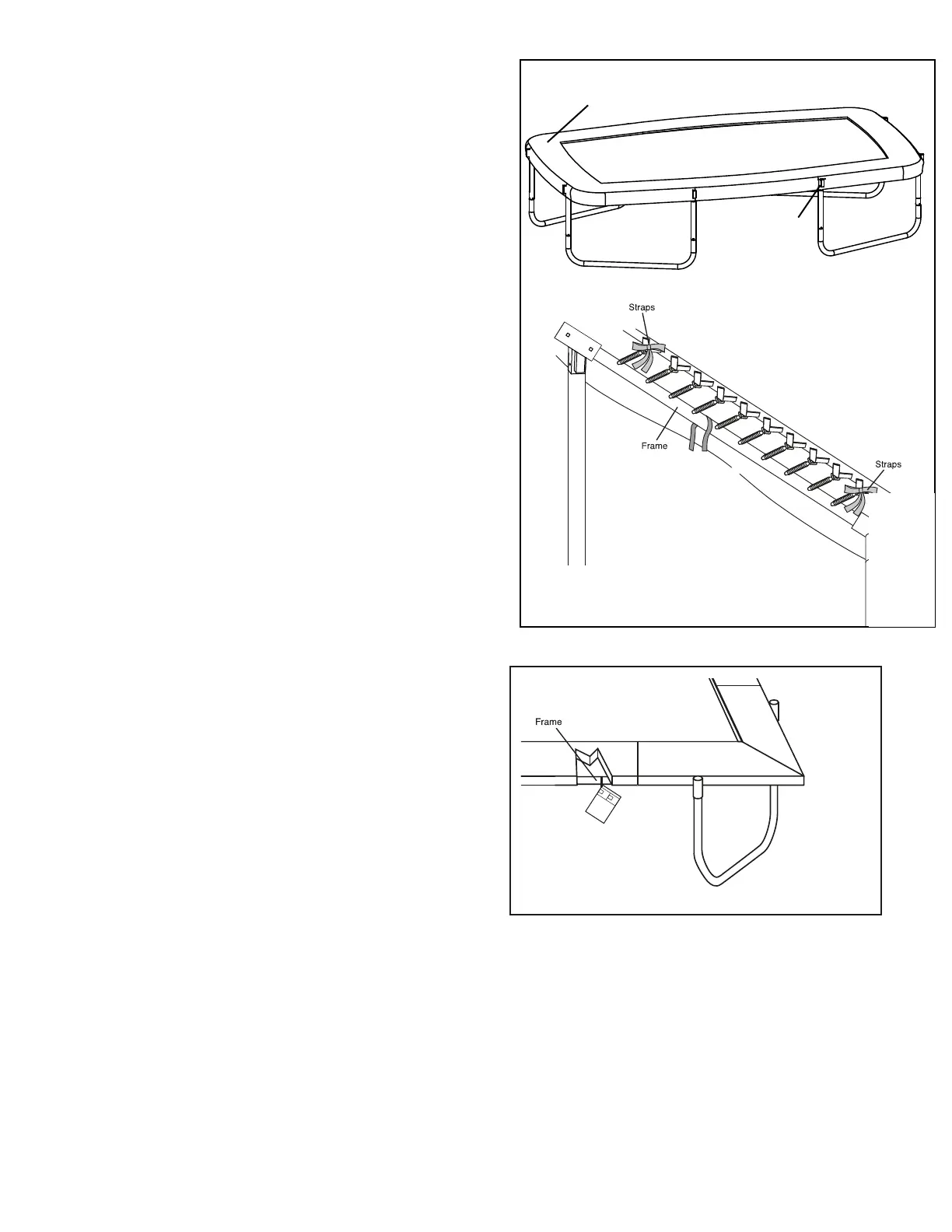 To disassemble (take apart) the trampoline, follow assembly steps 1 through 10 in reverse order. Do not attempt to