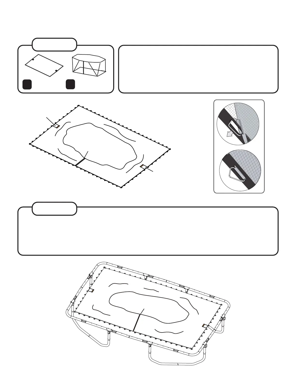 Place the jump mat on the ground inside the frame with the enclosure net on top. Place it so the jump mat lines