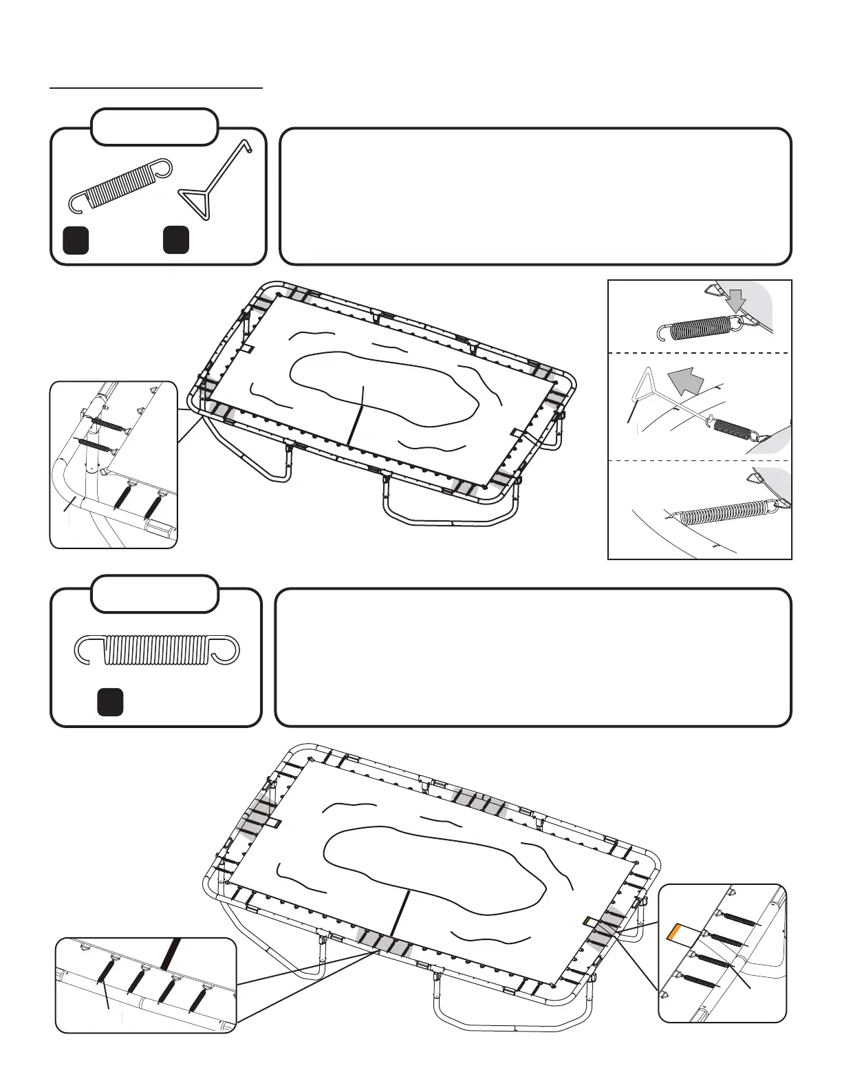 hole on the corner tube (1). Repeat this step to attach four springs on each