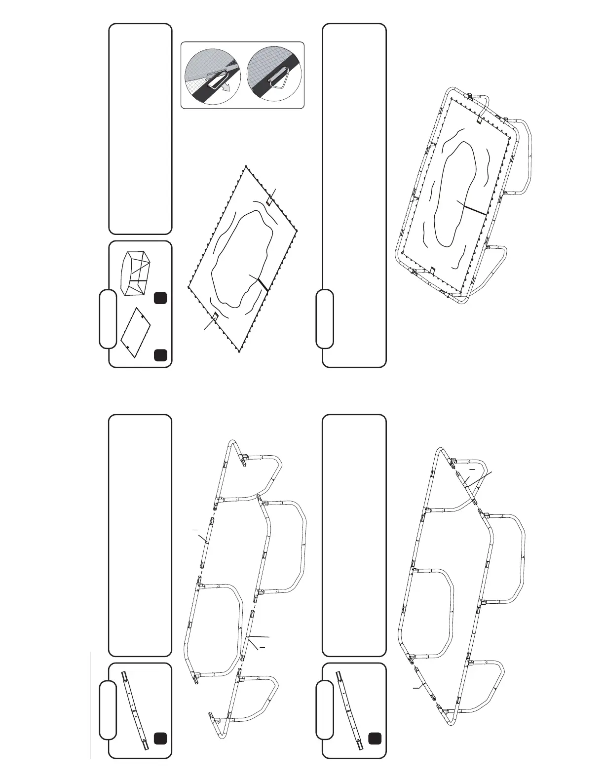 Placez la toile de la trampoline sur le sol à l’intérieur de l’armature avec le filet de l’enceinte sur le dessus.