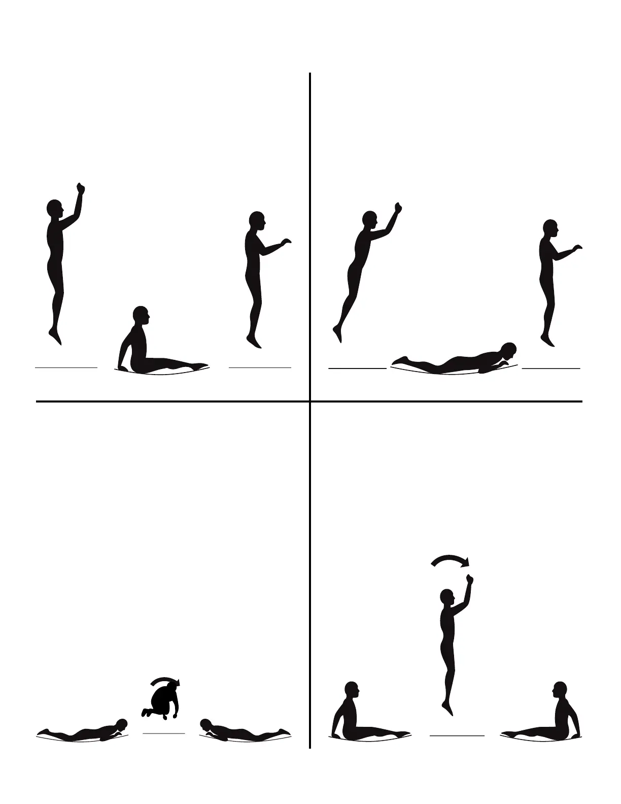 1. Start from a low bounce and land on the mat in a
