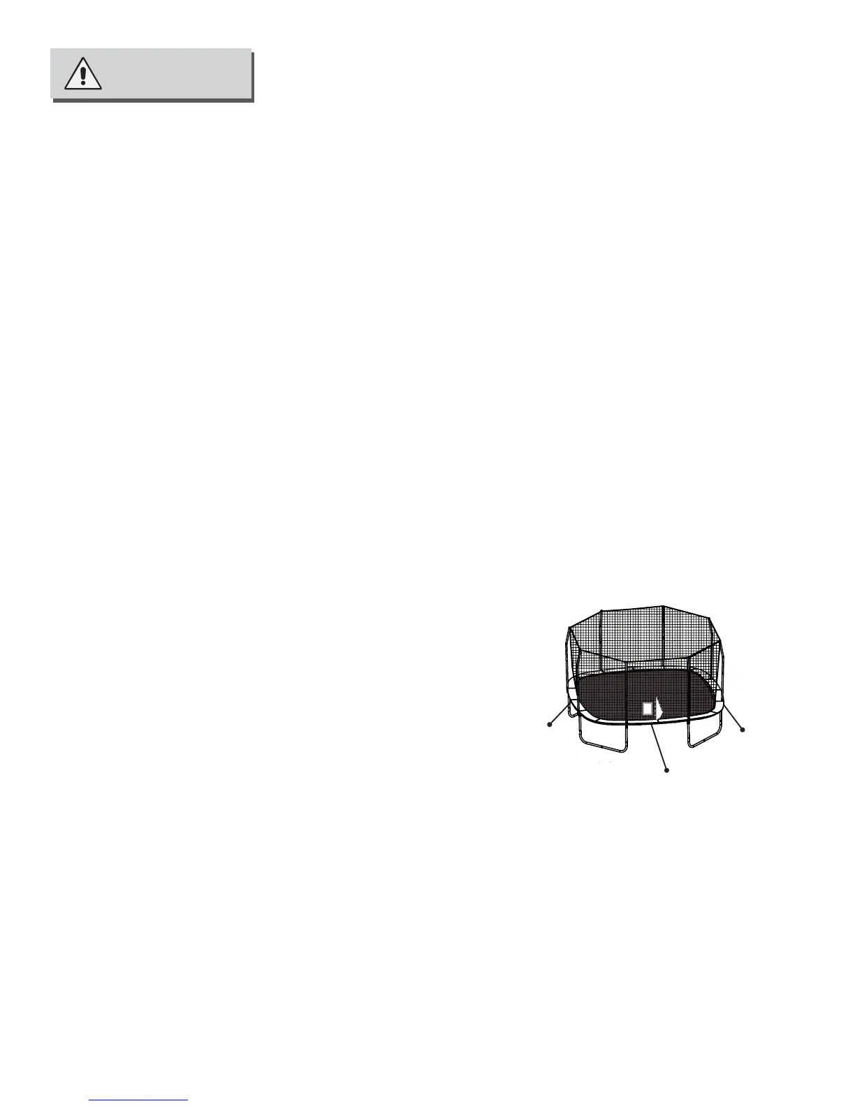 worn on the trampoline. The user should remove all sharp objects from his or her person that may cause injury or