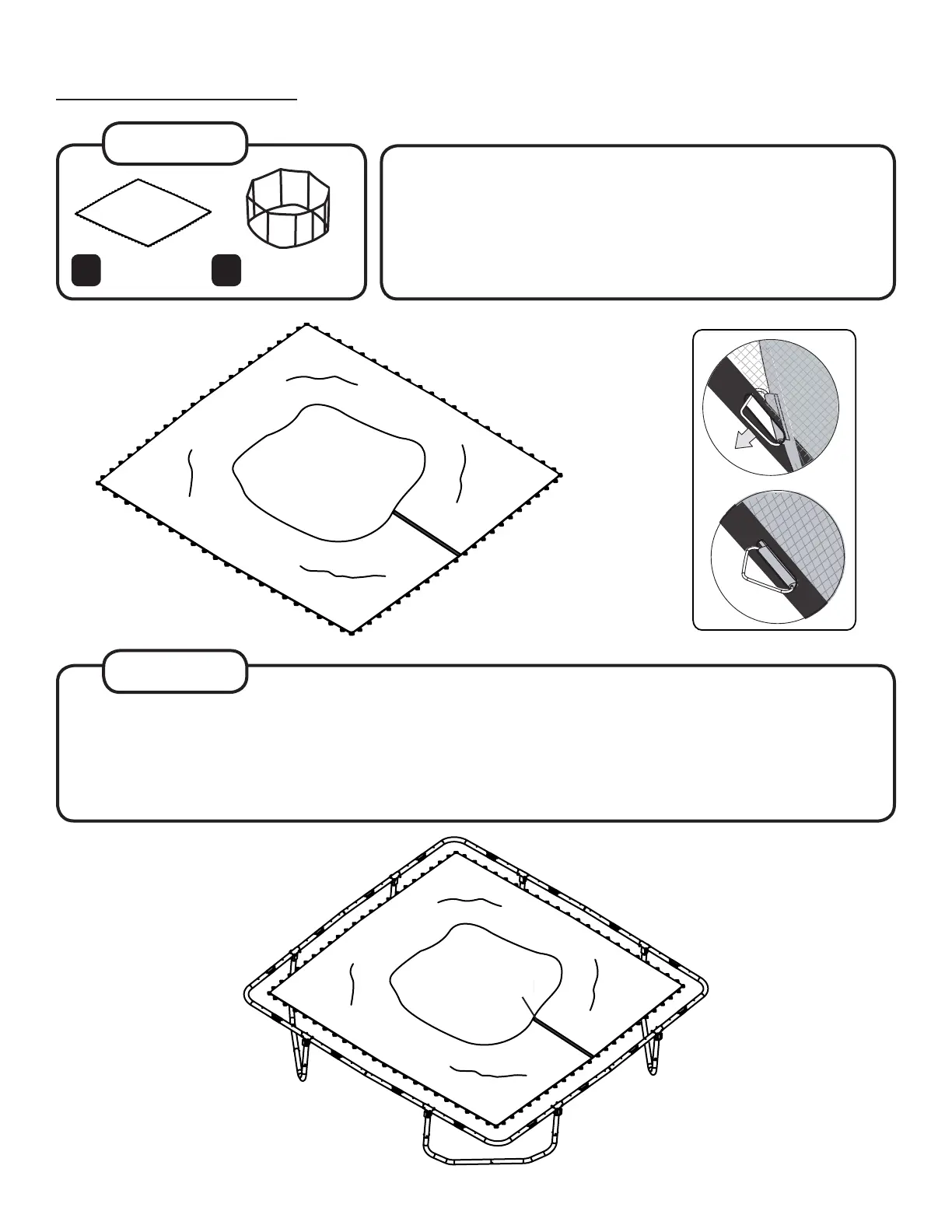 Place the jump mat on the ground inside the frame with the enclosure net on top.