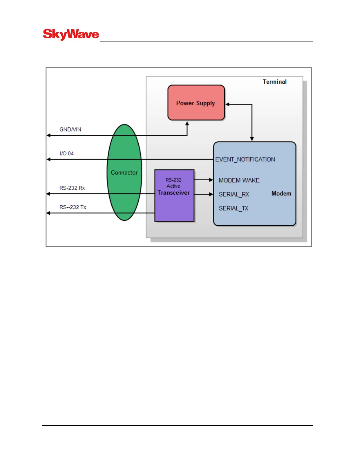 The terminal's I/O lines are configured as per Figure 14 when in pass-through mode. The modem's serial