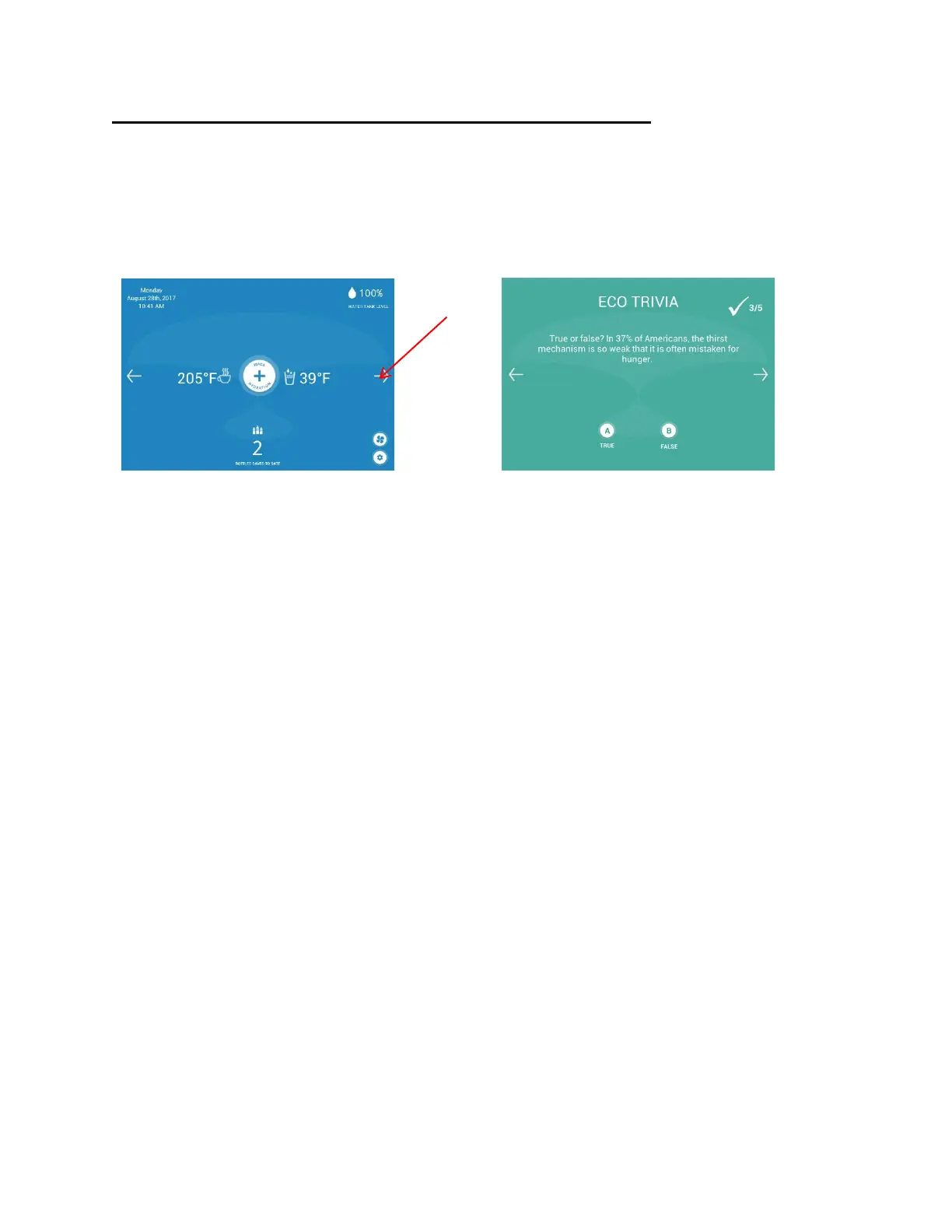 Trivia questions are accessed via tapping on the right arrow on the dashboard.