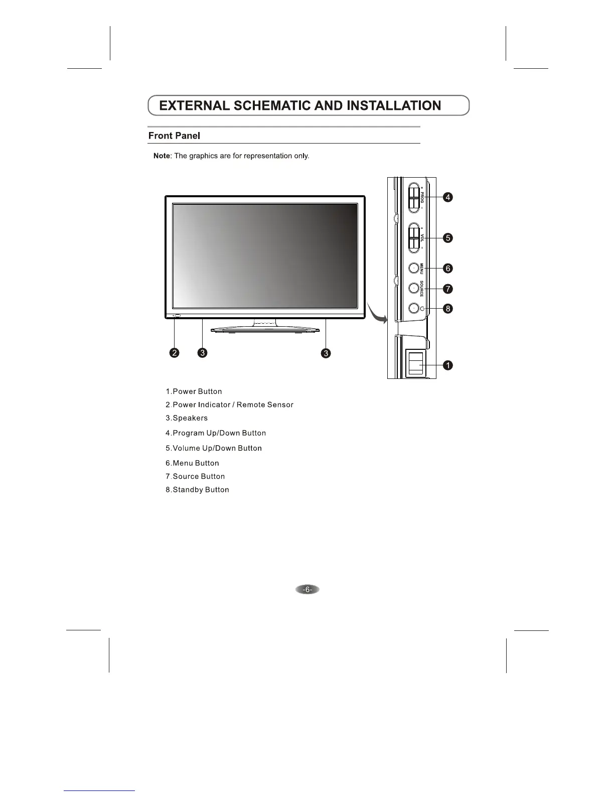 Skyworth 24E66A - External Schematic and Installation; Front Panel