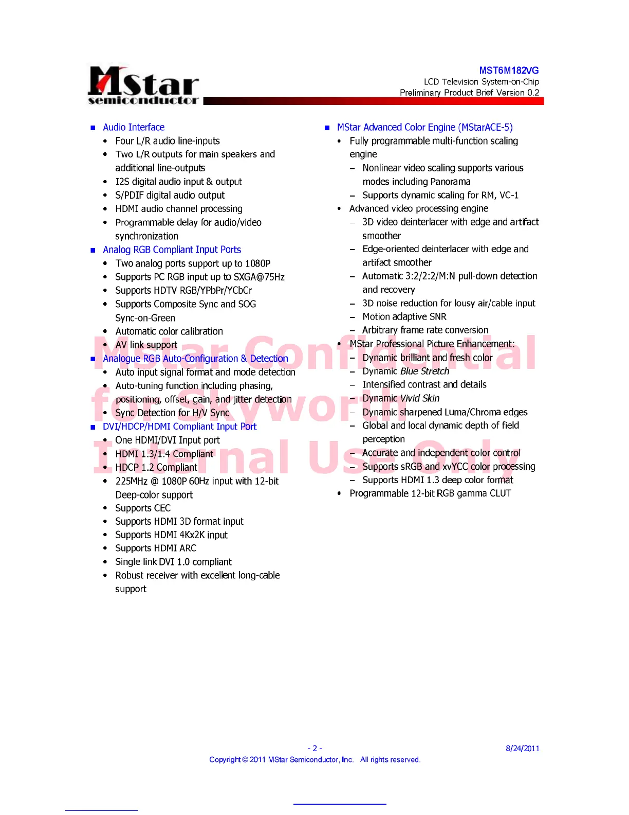 Skyworth 42E68 - MStar Advanced Color Engine (MStarACE-5); MStar Professional Picture Enhancement